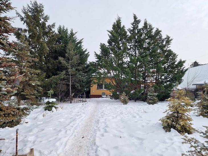 Kétgenerációs családi ház eladó Dunakeszi központjában – hatalmas, parkosított telkenDunakeszi egyik legkedveltebb, csendes utcájában, a Madách lakópark közelében kínálom eladásra ezt a ritka lehetőséget nyújtó ingatlant, amely egy 1313 m²-es, gondosan parkosított telken fekszik, két különálló épülettel – ideális nagycsaládnak, két generációnak vagy vállalkozásnak.Nagyobb épület (főház)A főépületben 3 tágas szoba található, kiváló elosztással, világos terekkel. A ház egyik legnagyobb előnye a nagyméretű, fedett terasz, amely egész évben kellemes pihenő helyét biztosít.Modern műanyag nyílászárók, motoros alumínium redőnyök és szúnyoghálók gondoskodnak a komfortérzetről, a fűtést pedig Wolf cirkó gázkazán, valamint 2 db 3,5 kW-os inverteres klíma segíti.Kisebb épület (különálló lakrész)A második épület teljesen önálló lakóegység:– 1 külön szoba– 1 konyha– 1 fürdőszobaEz ideális lehet nagyszülőknek, felnőtt gyereknek, bérbeadásra vagy vállalkozási célokra.Kert és extrákA telken 96 db fenyőfa és leylandi ciprus biztosít intim, zöld környezetet.A kertet automata öntözőrendszer tartja karban, mely a telken lévő gyűrűs kútról működik.A kinti programokhoz épített kerti grillező is rendelkezésre áll.A házban riasztórendszer és éjszakai áram lehetőség adott.ElhelyezkedésA ház Dunakeszi központi, mégis rendkívül nyugodt részén található. Pár perc sétán belül elérhető:– vasútállomás– buszmegálló– üzletek, bevásárlási lehetőségek– orvos, óvoda, iskolaJelenlegi ingatlan eladásában, és vagy hitel felvételben irodánk áll rendelkezésére.
