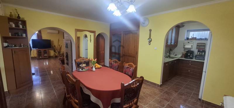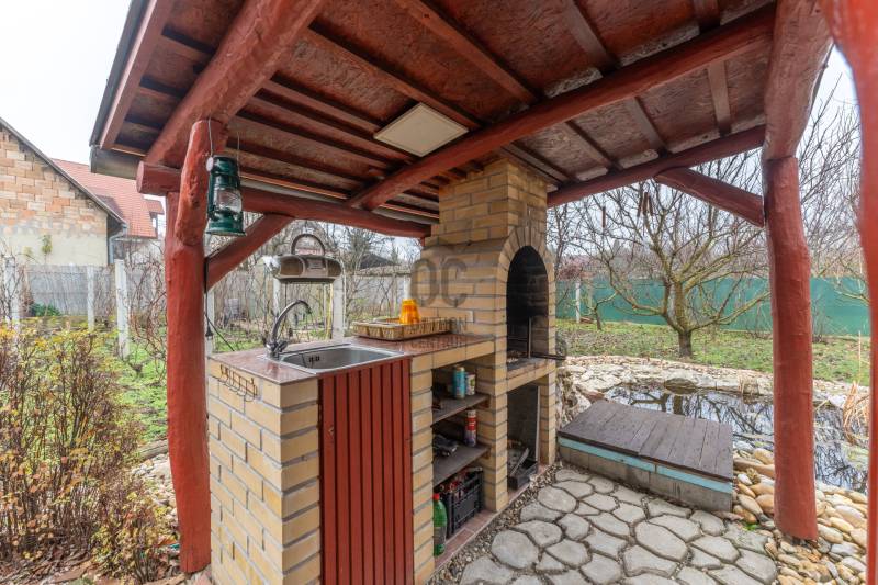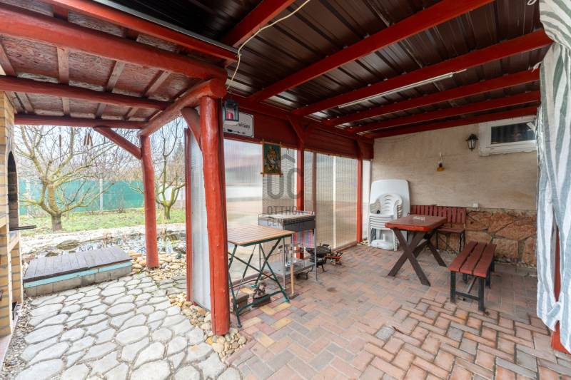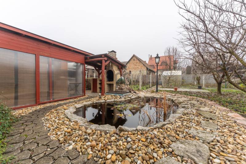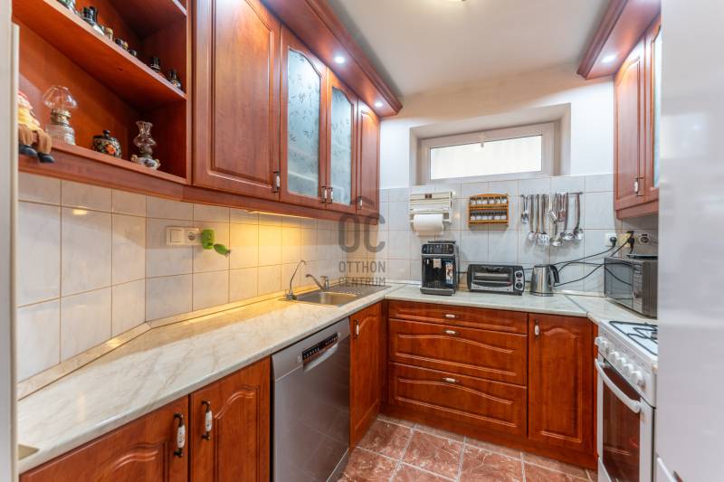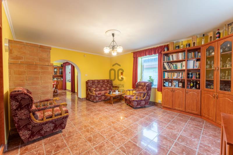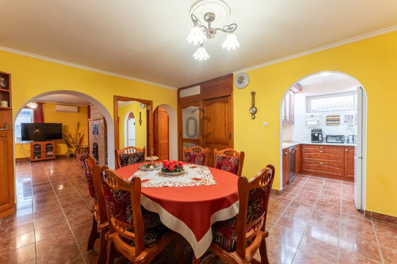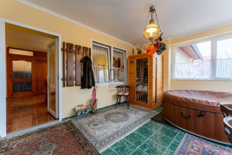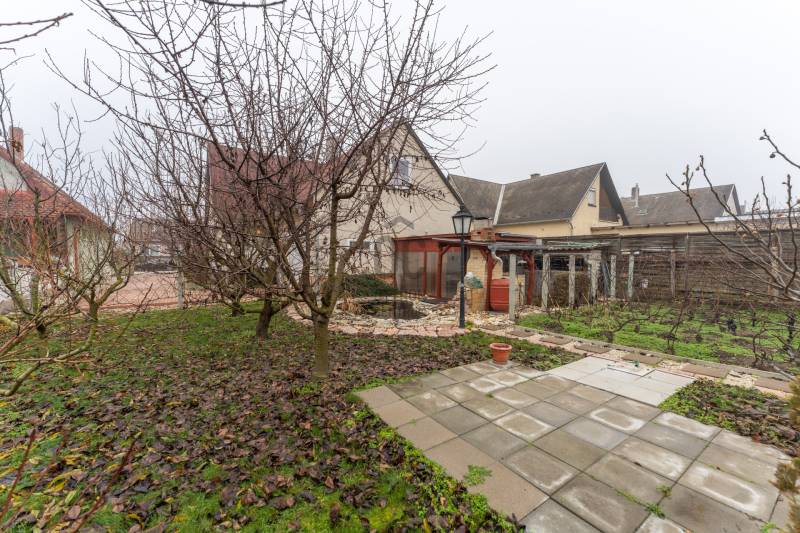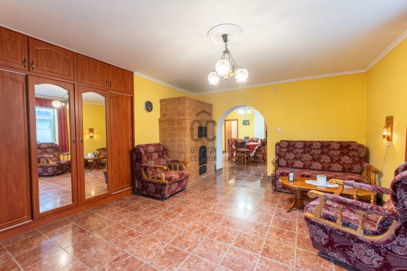 Móron, egy 649 m²-es, teljesen közművesített telken kínáljuk megvételre ezt a földszint + tetőtér kialakítású, 2013-ban szinte teljesen újjáépített, hangulatos családi házat.Kiváló választás azoknak, akik egy rendezett, nyugodt, zsákutcás környezetben szeretnének élni – bevásárlási lehetőségektől mindössze 500 méterre.Földszint: • hatalmas, napfényes nappali • egy hálószoba • konyha és étkező • tágas, fedett terasz – családi és baráti összejövetelek tökéletes helyszíne • fürdőszoba és külön WCTetőtér: • 2 lakószoba • egy nagy, világos tér, amely új tulajdonosa fantáziájára vár: lehet plusz hálószoba, játszószoba vagy dolgozószoba • WC-kézmosó, valamint zuhanyzó kialakításának lehetőségeMűszaki tartalom: • masszív beton alap, Porotherm 38-as tégla falazat, betonfödém • fa tetőszerkezet zsindelyfedéssel, üveggyapot szigeteléssel • Ariston gázkazán + padlófűtés • hangulatos, épített cserépkályha a nappaliban • rendkívül kedvező gázfogyasztás: kb. 1,5 m³/nap • műanyag nyílászárók, redőnnyel és rovarhálóval • klímaberendezés • rendszeres rovarvédelmi kezelés minden tavasszal • kamerarendszer Melléképületek, extrák: • 21,5 m²-es garázs borospincével (kb. 4 m²) • hangulatos kerti szaletli kemencével és hideg–meleg vizes mosogatóval • rendezett kert 80 tőke csemegeszőlővel • fóliasátor, medencének kialakított terület és kis kerti tó • 22 m mély fúrt kút • elektromos úszókapu, térkövezett udvarEgyéb információk: • bútorzat igény szerint megbeszélés tárgya • csereingatlan beszámítása lehetséges, értékegyeztetésselHa egy gondosan karbantartott, kényelmes és szerethető otthonra vágyik Móron, akkor ez a ház tökéletes választás lehet!Érdemes személyesen is megtekinteni – garantáltan beleszeret!Ez az ingatlan a \"Felező csomag\" megbízási portfólióhoz tartozik. Részletek az Otthon Centrum weboldalán.