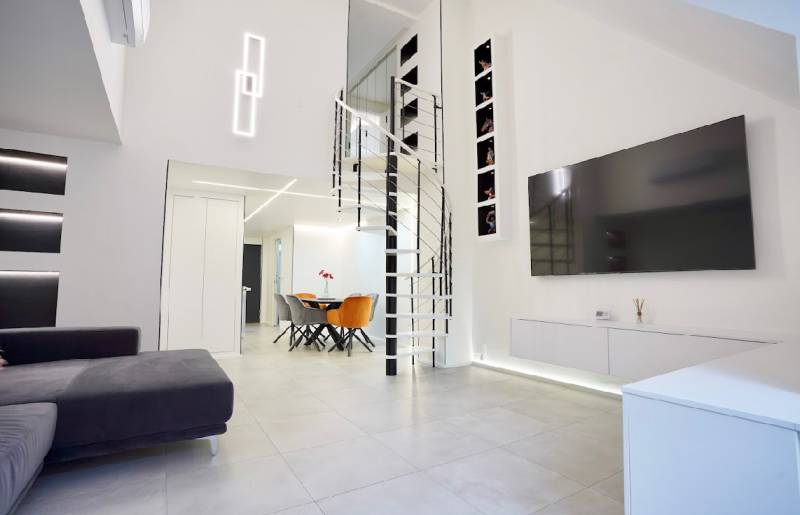 Designlakás a Mérleg utcában – 70 m²-es, olasz tervező által megálmodott exkluzív terekV. kerület | 70 m² | 2 szoba | DNY | utcai nézetÁr:156.900.000.-Budapest legelőkelőbb utcájában, a Mérleg utcában kínáljuk megvételre ezt a 70 m²-es, modern luxusélményt nyújtó, kifinomultan megalkotott designlakást. A belső tereket egy elismert olasz tervező álmodta meg, így minden részlet harmóniát, eleganciát és tudatos térszervezést tükröz.A tágas terek, a DNY-i tájolás, valamint a professzionálisan kialakított LED-fényjátékok együtt teremtik meg azt a különleges atmoszférát, amely nappal világos és visszafogottan elegáns, este pedig exkluzív, prémium lounge-hangulatot sugároz.Az ingatlan elrendezése:– tágas nappali– külön hálószoba– teljesen gépesített konyha– a képeken látható teljes bútorzattal együtt kerül átadásraA bejárat előtt található 21 m²-es közös terasz a belvárosban ritkaságnak számít, a házban pedig közös tároló biztosítja a kényelmet. A lakás utcai nézetű, mégis kellemesen nyugodt, így elegáns városi életteret kínál.Környék – Budapest legexkluzívabb pontjai pár lépésreA Mérleg utca környezete Budapest kulturális és gasztronómiai központja. Néhány perc sétán belül elérhető:•Szent István Bazilika – Budapest egyik ikonikus épülete•Szabadság tér – elegáns, zöld park diplomaták épületei között•Duna-part – esti sétákhoz és panorámás pillanatokhoz•Erzsébet tér & Deák tér – a város közlekedési és kulturális csomópontja•Pesti Vigadó és a Belvárosi kulturális negyed•Michelin-ajánlott éttermek, elegáns kávézók, boutique üzletek és luxusszállodákEz a Mérleg utcai lakás nem csupán ingatlan, hanem életstílus: modern olasz design, ragyogó belvárosi fények, és Budapest legszebb látnivalói közvetlen közelről.