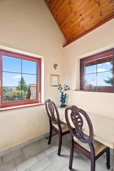 MINŐSÉG, TÉR, PANORÁMA - OTTHON, AMI VALÓDI ÉRTÉKET KÉPVISEL!Szentendre egyik legkedveltebb, családias hangulatú városrészén, Pismányban, a nyugodt és rendezett Körte utcában ELADÓ egy különleges, mediterrán hangulatú, 3 szintes, 184 nm hasznos alapterületű, remek elrendezésű és élhető terekkel rendelkező, nappali + 3 hálószobás, teraszos, panorámás csalási ház saját wellness részleggel, rengeteg extrával, 658 nm-es, összközműves telken!Az ingatlan könnyed eleganciával ötvözi a modern kényelmet, a funkcionalitást és a természet közelségét.A HÁZ ELRENDEZÉSEFöldszint (60 nm) - a mindennapok központja- Tágas előszoba 2 bejárattal, beépített szekrénnyel- Világos, amerikai konyhás nappali kandallóval, közvetlen teraszkapcsolattal- Komfortos kialakítású, tágas hálószoba- Sarokkáddal felszerelt fürdőszoba wc-vel- A nappali hatalmas üvegfelületei rengeteg természetes fényt árasztanak be, a tágas terasz pedig ideális helyszínt biztosít családi összejövetelekhez vagy kikapcsolódáshoz kellemes, zöld környezetben. Tetőtér (60 nm) - privát terek világa- 2 tágas, napfényes szoba saját terasszal, beépített szekrényekkel- Zuhanykabinnal felszerelt ablakos fürdőszoba wc-vel- Home office sarok csodás panorámával- A privát hangulatú szobák nyugalmat sugároznak, teraszukról pedig csodás panorámában gyönyörködhetnek az itt lakók.Alsó szint (60 nm)- Praktikus kamra- Gépészeti, háztartási helyiség - Infraszauna- Zuhanyzóval, wc-vel felszerelt fürdőszoba külön bejárattal a kertből- Hatalmas alapterületű többfunkciós helyiség ami tökéletes lehet konditeremnek, hobby- vagy játékszobának, rekreációs térnek vagy garázsnak .- Ez a szint hatalmas hozzáadott értéke a háznak, az aktív életmódot kedvelők számára kiváló lehetőség.EXTRÁK ÉS KÜLÖNLEGESSÉGEK- Központi porszívó- Klímaberendezések- Riasztórendszer- Működő kandalló- Automata öntözőrendszer a kert teljes területén- Infraszauna, mely az otthoni wellness élményét hivatott megteremteni- Panorámás teraszok és erkélyek , gyönyörű kilátással Pismány dombjaira - tavasztól őszig a ház valódi életterei- Mediterrán hangulatú, gondozott kert oszlopsorral, természetes kőburkolattal, dísznövényekkel és örökzöldekkel- Parkolási lehetőség 5 autó számáraMŰSZAKI FELSZERELTSÉG - Kényelmes és takarékos üzemeltetésA ház kialakításánál fontos szempont volt a minőség és megbízható működés.- Tégla építés (2003)- 15 cm-es hőszigetelés- Gázkazán padlófűtéssel- 2 rétegű hő és hangszigetelt fa nyílászárók- Spaletták- Minőségi hideg- és melegburkolatok- Korszerű épületgépészet és megbízható műszaki állapot- Kedvező fenntartási költségekKÖRNYÉKA Körte utca Pismány egyik legcsendesebb, legbiztonságosabb részén található, ahonnan mindössze 5 perc alatt elérhető autóval Szentendre belvárosa. A környéken minden megtalálható, ami a hétköznapokban szükséges.- Boltok, bevásárlási lehetőségek- Óvodák, Iskolák- Éttermek, kávézók- Buszmegálló- Sportolási, szabadidős lehetőségekEz az ingatlan tökéletes választás:- Nagyobb családoknak, akik több, kényelmes, szeparált szintet szeretnének- Otthonról dolgozóknak, akiknek fontos a csend és nyugalom a home office-hoz- Akik kedvelik a privát élettereket, teraszokat és panorámát- Sportos, aktív életmódot kedvelőknek - edzőteremnek alkalmas tér adott- Igényes vevőknek, akik minőségi, jól felszerelt , gondozott házat keresnekTovábbi információkért és megtekintési szándékkal kapcsolatban várom hívását!