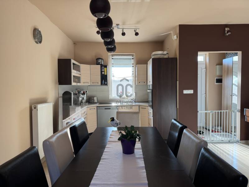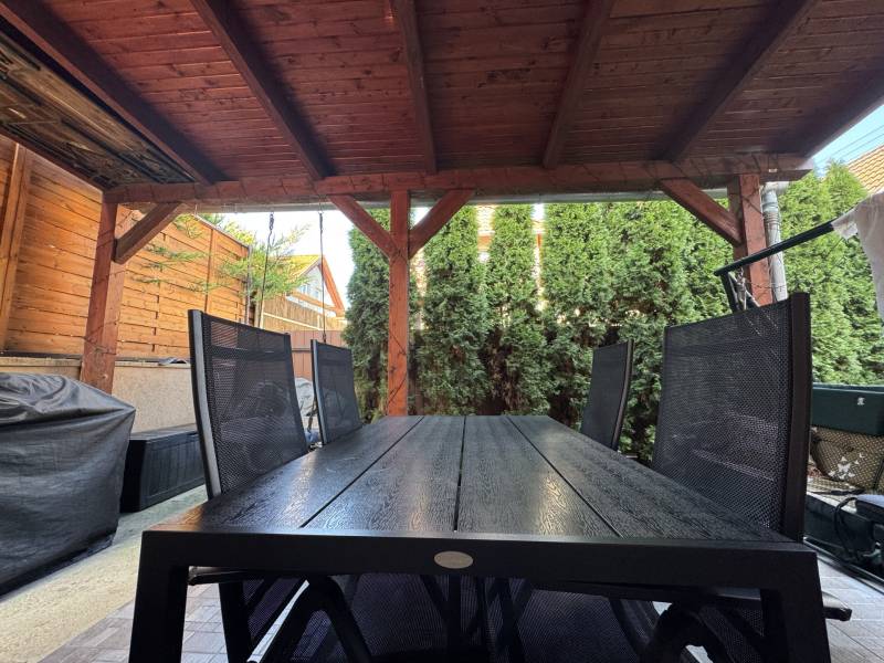 Fót az északi agglomeráció dinamikusan fejlődő városa, történelmi múlttal és ehhez méltó csodálatos kultúrkörrel rendelkezik a Fővárostól egy karnyújtásnyira.Gyönyörűen gondozott köztereivel, nívós intézményeivel, zöld határaival és remek infrastruktúrájával méltán vált a kiköltöző Családok dobogós választásává az elmúlt években.Itt, csendes utca végében került eladósorba egy kiváló adottságú IKERHÁZ.Szélső, sarki épület, így abszolút szeparált, intim kerttel rendelkezik, mely éppen akkora hogy gondozása nem teher és tökéletesen helyet adhat családi BBQ partyknak, létesíthető benne gyermekjátszótér, grillterasz és így is marad hely autóbeállásra valamint a konyhakertnek.Fiatal építésű, ehhez mérten korszerű, dryvit palástba bújtatott homlokzat, gondosan szigetelt födém és tetősík, műanyagtokos thermoüveges nyílászárók és kondenzációs gázkazánról biztosított fűtés. A nyári hőszabályozást klímaegységek segítik, a kerti tárolásra pedig faházikó áll rendelkezésre.2 szinten bruttó 100m2-el gazdálkodik, melyben optimális elrendezés valósult meg:Földszinten kényelmes előszoba, világos, nagy, teraszkapcsolatos nappali, tágas étkező-konyha, lépcső alatti mosókonyha wc-vel valamint a nagy fedett terasz kaptak helyet. Emeleti szinten 3 hálószoba, közlekedő és nagy fürdőszoba alkotják a helyiséglistát. A szobák saját franciaerkéllyel rendelkeznek, a tetőteres kialakítás ellenére jól bútorozhatóak, és kellemes világos életteret biztosítanak Lakóiknak. A fürdőszoba nagy, káddal és zuhanykabinnal is ellátott.Optimális, elrendezés, kényelmes tér, igényes kialakítás!Tökéletes választás azoknak, akik Budapestről kiköltözve vágynak a kertre, akik családalapítás céljából keresgélik új Otthonukat és olyan környezetben képzelik el a jövőjüket ahonnan a közlekedés megoldott, a szomszédság rendezett, a ház pedig fiatalos és nem kell hozzányúlni még jó pár évig!Jöjjön el, tekintse meg, FRISSEN VAN PIACON és biztos hogy nem sokáig!-alaprajz feltöltése folyamatban-