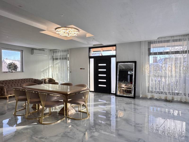 CSAK AZ IRODÁNK KÍNÁLATÁBAN! XXII. kerületben, Budafokon kínálunk eladásra egy FELÚJÍTÁS ALATT ÁLLÓ, nagy nappali + 4 szobás, 2 fürdőszobás, étkező-konyhás 214 m²-es lakóterű magasföldszinti CSALÁDI HÁZAT, melynek az alsó szintje plusz 110 m2, amely egy 647 m²-es telken helyezkedik el.A házba belépve egy tágas nappaliba érkezünk, innen tovább haladva található egy étkezős - konyha, beépített modern konyhabútorral. Széles folyosóról nyílnak a gyerek szobák, a nagy kádas fürdőszoba, és két nagy méretű hálószoba saját gardrób helyiségekkel. Az egyik hálószobához tartozik még egy zuhanyozós fürdőszoba WC-vel és egy gardrob szoba.A másik hálószobához is tartozik külön gardrob szoba.A ház alatti alsó szint 110 m2, ahol beépített konyha, kamra, kis szoba, zuhanyzós fürdőszoba WC-vel is kialakításra került, plusz egyéb tárolásra alkalmas terület is maradt.LÁSD AZ ALSÓ SZINT ALAPRAJZÁT !A ház ideális nagycsaládosoknak, de két generációnak is kényelmes tereket biztosít, a 214 m²-es lakótér, és az alsó szint helyiségei. LÁSD A LAKÓTÉR /magasföldszint/ HELYISÉGEINEK ELRENDEZÉSÉT AZ ALAPRAJZON !MŰSZAKI JELLEMZŐK: - Az épület az 1960-1970-es években épült vegyes falazattal. - 2024-2025-ben teljes körű felújításon esett át.- ennek részeként megtörtént a tetőcsere, vasbeton födém került kialakításra- a teljes gépészet és fűtésrendszer megújult - a nyílászárók cseréje is megtörtént, háromrétegű, hő- és hangszigetelő műanyag ablakok, új bejárati ajtó került beépítésre - a ház külső falaira 15 cm-es dryvit hőszigetelés került - a fűtés hőszivattyúval történik, minden helyiségben padlófűtéssel.PARKOLÁS: A kertben több autó számára térkövezett felszíni beálló biztosított.EXTRÁK: A házban 5 db hűtő-fűtő klíma található.KÖRNYEZET: Az ingatlan csendes, kertvárosias környezetben található, kiváló tömegközlekedéssel és közeli bevásárlási lehetőségekkel (ALDI, Campona, Tesco). A közelben óvoda, két tannyelvű iskola és gimnázium is működik.. Autóbusszal 15–20 perc alatt elérhető a 4-es metró kelenföldi végállomása. Budapest belvárosa pedig sétatávolságban lévő buszjáratokkal fél óra alatt megközelíthető.Az ingatlan ELŐRE EGYEZTETETT IDŐPONTBAN tekinthető meg – akár hétvégén is.KÉSZPÉNZES ÉRDEKLŐDŐK JELENTKEZÉSÉT VÁROM !FORDULJON HOZZÁM BIZALOMMAL, VÁROM HÍVÁSÁT, ÉRDEKLŐDÉSÉT!(G.I.)