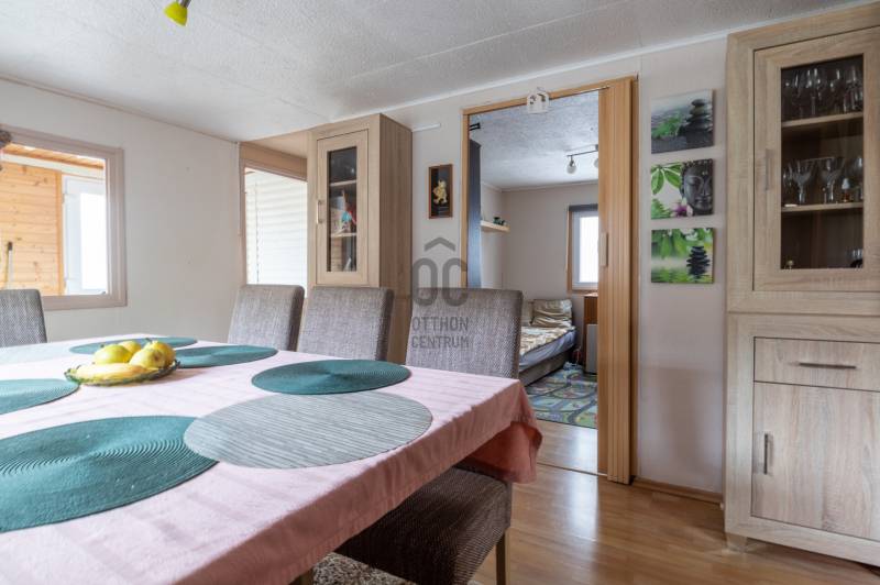 Dömsödön a Dunától egy utcányira keresi új tulajdonosát egy állandó lakhatásra alkalmas, szigetelt, 62 nm lakóterületű + 9 nm-es beépített terasszal rendelkező, könnyűszerkezetes ház, 411 nm-es telekkel!KÖRNYÉK ÉS KÖZLEKEDÉS:- Dömsöd, Pest vármegyei, családias hangulatú település, Budapesttől alig egy órára.- Rendezett, jól ellátott község városias infrastruktúrával.– A ház Dömsöd belterületi részén helyezkedik el, természetközeli környezetben a Ráckevei‐Duna mentén.– A község biztos közúti kapcsolatban van az 51-es főúttal, amely a Duna mentén futó egyik legfontosabb regionális közlekedési tengely.– A főút átvezet Dömsöd mellett, így nem terheli a belső lakóövezeteket, de könnyen megközelíthető bármelyik településrész.- Közösségi közlekedéssel (vonattal és busszal is) elérhető, de autóval a legkényelmesebb, a Népligetbe közlekedő buszjárat megállója kb. 1,5 km.A HÁZRÓL:– 1982-ben épült, könnyűszerkezetes, Ádám típusú faház.– Az ingatlant 2020-ban felújították.– A házat szigetelték, a nyílászárókat műanyagra cserélték.– Elosztása: beépített terasz hatalmas ablakokkal, konyha, tágas étkező, fürdőszoba+WC, nappali, két külön nyíló szoba, hátsó terasz és beépített tároló.– A megfelelő hőmérsékletről két hűtő-fűtő klíma gondoskodik, melyek használatával egész évben lakható a ház.– Az éves áramszámla a téli fűtéssel együtt 150.000 forintból (12 500 Ft/ hó) megoldható.– Víz, villany, csatorna bevezetve, gáz az utcában.– Az ingatlan tehermentes, igény esetén gyorsan birtokba vehető.A TELEK ADOTTSÁGAI:– Téglalap alakú, 411 m2-es gondozott síktelek.– Egy gépkocsi részére fedett beálló lett kialakítva a telken belül.Önnek akkor ajánlom ezt az ingatlant, ha zöld környezetben, csendes helyen, nyugodt otthonra vágyik és fontosnak tartja az alacsony fenntartási költségeket.AZ INGATLAN MEGTEKINTHETŐ:– személyesen,– online személyes bejelentkezéssel.FINANSZÍROZÁSI KÉRDÉSEKBEN ONLINE ÜGYINTÉZÉSSEL IS SEGÍTÜNK:– Bank-független hitelcenterünk díjmentesen versenyezteti minden bank és hitelintézet ajánlatát.– Önnek nincs más dolga, mint beszélgetni munkatársunkkal, majd a megversenyeztetett ajánlatokból kiválasztani a hosszútávon is a legmegfelelőbb konstrukciót.– Szakértőink 20 éves szakmai tapasztalattal és egyedi igényekre szabott, fogyasztóbarát lakáshitelekkel, babaváró hitellel, teljes körű CSOK PLUSZ és OTTHON START program ügyintézéssel várják Önt.Várom hívását a hét bármely napján!