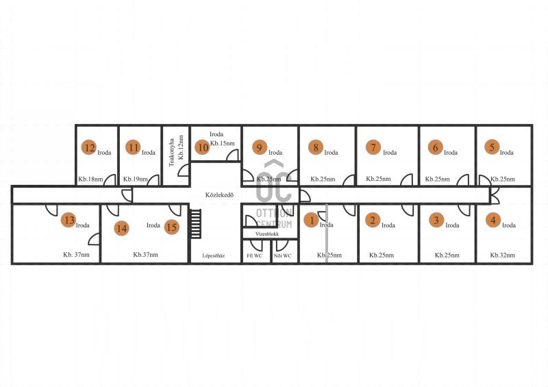 Eladó irodák Kecskeméten, az Irinyi utca 17/C szám alatt, az épület 2. emeletén,a főtértől 5 percre, a belváros peremén, zöldövezetben, a Villanegyedben! Jó megközelíthető autóval, busszal és gyalogosan is.A bérlők és az idelátogatók ingyen parkolhatnak az autóikkal az irodaház parkolójában.Az irodaház területére egy biztonságos beléptető rendszeren keresztül juthatnak be.Az elegáns, barátságos irodák tágasak, világosak, kényelmesek, bútorozottak, központi fűtéssel és klímával rendelkeznek.Valamennyi irodában internet végpont van. Internet szolgáltatás rendelhető.Minden bérlő rendelkezésére áll a teakonyha és a mellékhelyiség.A hirdetésben szereplő ár, bruttó irányár! Nettó irányára : 147 millió forint!Javaslatok egyéb hasznosíthatóságra: Oktatóterem, egészségügyi központ.Bérelhető irodák:Fit irodák kb: 18 m2Medium irodák kb: 25 m2Large irodák kb: 33 m2Large irodák kb: 37 m2XL iroda: 1* 37 nm-es + 8 nm-es előtérXXL iroda: 2*37 nm-es + 8 nm-es előtér
