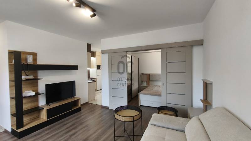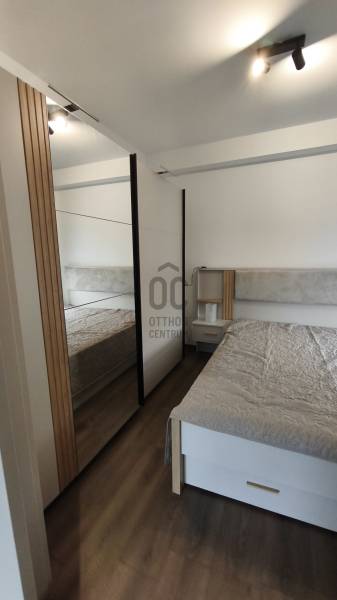 Debrecen belvárosában, a Miklós utcában kiadó, egy most átadott új építésű liftes társasház lakása.Az ingatlan 38 m2 - es, modern elrendezésű.Helyiségei : nappali, konyha - étkező, szoba, fürdő + folyosó.Még most lett átadva, berendezve, ön lehet az első lakója.A bútorok, gépek, evőeszközök, stb... , minden vadi új, műszaki dolgok garanciás.Műszaki jellemzői : Rolóval szerelt 3 rtg műanyag ablakok, HŐSZIVATTYÚS FŰTÉS PADLÓ HŐLEADÓVAL, MENNYEZET HŰTÉS , fürdő zuhanyzós, mosó - száritógéppel szerelt stb.., ami nagyon fontos, hogy minimális rezsivel fog működni az ingatlan.A lakás gyakorlatilag azonnal birtokba vehető.Lehet bérelni az épület alatti teremgarázsban zárt garázst, díja : 30.000 FtMegbízható, magára és az környezetére igényes bérlőt / bérlőket keresünk, minimum 1 éves időtartamra.Szokásos 2 havi kauciót kérünk.Ha felkeltettem az érdeklődését, kérem, hívjon bizalommal.