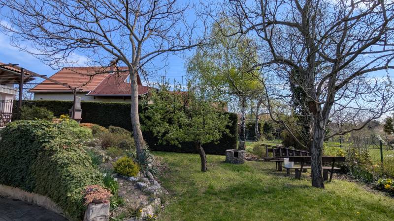 Eladó igényes, saját részre épített családi ház Budafok csendes részén – 108 m² + 36 m² mélygarázs, gyönyörű parkosított kerttelBudafok legfelkapottabb kertvárosi részén, a Tegzes utca környékén lévő, csendes kis utcában, egy 760 m²-es, saroktelken elhelyezkedő, gondosan megépített, kiváló állapotú családi ház eladó. Az ingatlan 2006-ban saját részre épült, pince + földszint kialakítású, összesen a garázzsal együtt 132 m² hasznos alapterülettel.Főbb jellemzők:-Alapterület: 132 m² (nappali + helyiségek + garázs) +25 m² terasz-Telek mérete: 760 m² – gondozott, parkosított kerttel, gyümölcsfákkal, kerti sütögetővel-Építés éve: 2006-Energetikai besorolás: DElosztás, helyiségek:-Tágas nappali-2 hálószoba + 1 félszoba (dolgozó/gardrób célra is alkalmas)-Gardróbszoba-Külön konyha + kamra-10 m²-es fürdőszoba (zuhanyzó + kád)-Külön WC-25 m²-es déli fekvésű terasz közvetlen kertkapcsolattal és sziklakerttelGépészet, extrák:-Fűtés: Gázkazán padlófűtéssel + radiátorokkal-Melegvíz ellátás: Napkollektor + melegvíz-tartály (puffertartályos rendszer)-3 db hűtő-fűtő klímaberendezés-Vízlágyító berendezés-Riasztórendszer-Műanyag nyílászárók redőnnyel, fa beltéri ajtók-Burkolatok: parketta és járólap kombináció-Hőszigetelt padlásfödém-Falazat: tégla, 10 cm külső szigeteléssel-Tető: Bramac betoncserép, sátortetős kialakítás, napkollektorral a déli oldalonParkolás, garázs:-36 m²-es, fűtött mélygarázs, elektromos garázskapukkal – akár 2 autó számára-Kerti beálló egy további autónak-Automata kapu és garázsajtókKözművek:-Teljes összközműves ellátottság: víz, villany, gáz, csatorna-Elektromos kapu és riasztó rendszerKiváló közlekedés: Mindössze 10 perc alatt elérhető Kelenföld vasútállomás és a 4-es metró végállomása, így a város bármely pontja könnyen megközelíthető. Autóval több útvonalon keresztül is gyorsan elérhető a belváros, míg az Allee bevásárlóközpont és a budaörsi nagyáruházak mindössze 10–15 perces autóútra találhatók. Közelben lévő buszjáratok: 150, 150B, 250, 250B, 251, 251A, 251BEz a Budafok kertvárosi részén található ingatlan tökéletes választás családok számára, akik minőségi kivitelezésű, jól megtervezett otthont keresnek nyugodt környezetben, mégis kiváló közlekedéssel és infrastruktúrával.Ne hagyja ki ezt a remek lehetőséget – tekintse meg személyesen is!