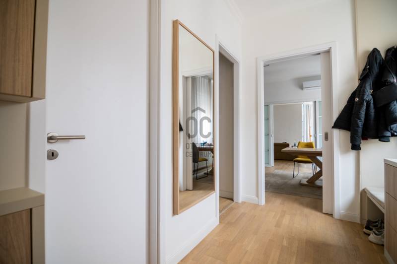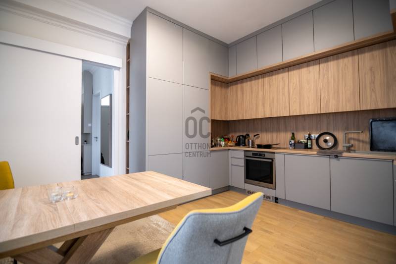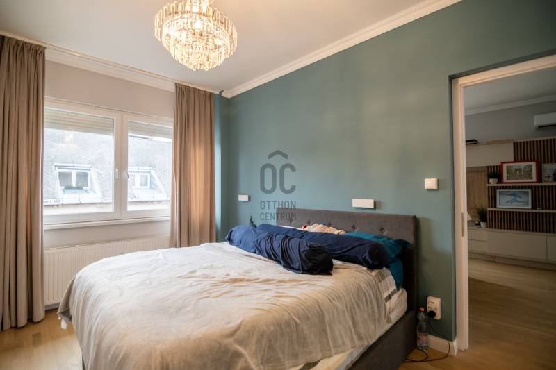 Eladó egy 93 m²-es, 4 szobás, kiváló állapotú, tágas társasházi lakás Lágymányos egyik legjobb részén. A lakás a teljes 5-ik emeleten egyedül helyezkedik el, így rendkívüli privát, csendes, zárt érzetet biztosít – valódi ritkaság a környéken.A ház liftes, a lépcsőház és a közös területek rendezettek, karbantartottak. A fűtés házközponti egyedi méréssel, a lakás délnyugati tájolású, utcai nézettel.Parkolás: a ház alatt található magánteremgarázsban időszakosan bérelhető vagy vásárolható beálló (kb. 30.000 Ft/hó-tól). A környéken ez nagy előny.Helyiségek: tágas nappali (24 m²), három különnyíló szoba, nagy étkezős konyha (16 m²), fürdő + WC, külön WC, gardrób, közlekedők.Nappalija szuper világos, mivel az erkély rész teljesne be lett építve és ott fal helyett végig üveg van. Állapot: lakás – kiváló, homlokzat – jó, lépcsőház – kiváló.Közös költség: 50.000 Ft, (fűtés általány benne van). Lokáció: Bartók Béla út – galériák, kávézók, BME/ELTE, Móricz és Gellért tér pár perc sétára. Közlekedés kiemelkedő: 4-6, 19, 49-es villamos, gyorsbuszok.Birtokbaadás: max. 4 hónap, de akár hamarabb is lehetséges.Az ingatlan a Hűség értékesítési csomag keretében érhető el, amelynek részleteiről szóban tudunk egyeztetni. Keressen bizalommal, ha megtekintené.Ez az ingatlan a \"Hűség csomag\" megbízási portfólióhoz tartozik. Részletek az Otthon Centrum weboldalán.