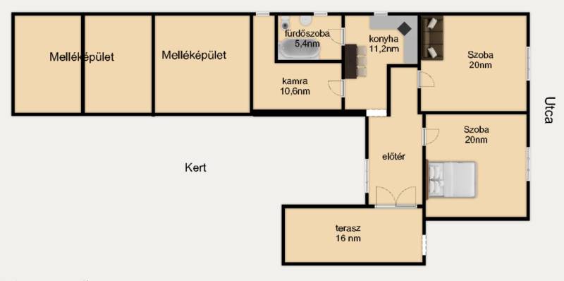 Kiskundorozsma csendes, jól megközelíthető részén eladó egy felújítandó, 2 szobás, vegyes falazatú családi ház,86,8 m² hasznos alapterülettel, amely a terasz beépítésének befejezésével akár 94 m²-re bővíthető.A ház egy 907 m²-es, két utcára nyíló, ritkaságnak számítóan nagy telken helyezkedik el.Csendes utcában található, ahol a környék folyamatosan szépül – a szomszédos házak nagy része már megújult vagy felújítás alatt áll, így az utca összképe kifejezetten kellemes.A mindennapi élethez szükséges szolgáltatások könnyen elérhetők:buszmegálló, élelmiszerbolt, óvoda kb. 500 méterre,a településközpont pedig pár perces sétával megközelíthető.Főbb jellemzők:Vegyes falazat2 szobaFa nyílászárókGázkonvektoros fűtésMelegvíz ellátás gázbojlerrelBekerített, tágas udvarKét utcára nyíló 907 m²-es telekKiváló alap felújításhoz és egyedi otthon kialakításáhozÁr: 44 700 000 FtTovábbi információért vagy megtekintésért keressen bizalommal:???? 06 70 454 2063