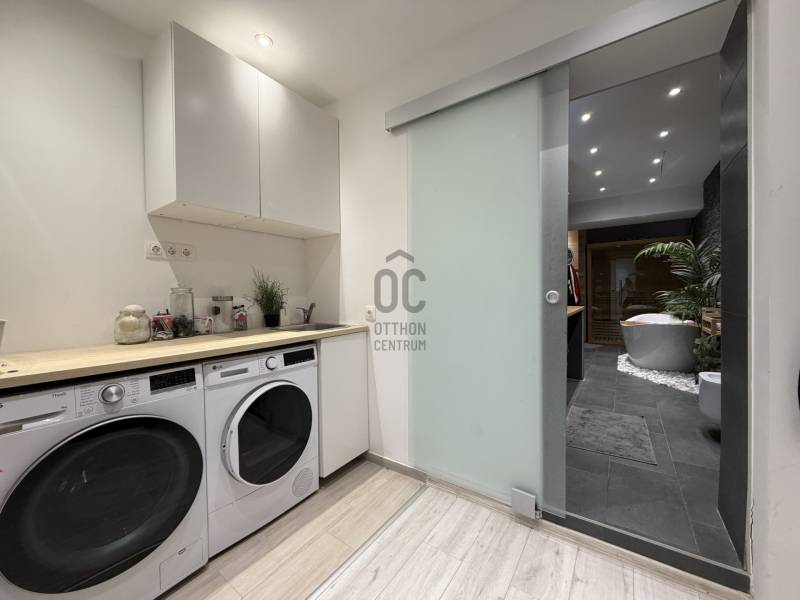 Budán, Testvérhegy egyik forgalomtól elzárt, hangulatos zsákutcájában kínálunk bérbe egy igényesen felújított, külön bejáratú házrészt. Az ingatlanhoz egy körülbelül 600 m²-es, saját használatú kertrész tartozik, amelyet egy elegáns, 100 m²-es privát terasz egészít ki – így a szabadtéri pihenés, a reggeli kávé vagy az esti borozás is tökéletes helyszínt kap.A házrész nettó 101 m²-es, modern, letisztult belső terekkel rendelkezik. A tágas amerikai konyhás nappali a mindennapok központja, amely harmonikusan kapcsolódik a kert látványához. A hálószoba kényelmes és csendes, mellette pedig egy dolgozósarok biztosít ideális helyet az otthoni munkavégzéshez. A fürdőszoba különleges élményt nyújt a káddal, a zuhanyzóval és a saját szaunával, míg a gardróbszoba – igény esetén – akár második hálószobává is alakítható. A lakást egy előszoba és egy különálló WC teszi teljessé. A teljesen felújított belső tér modern, igényes és barátságos hangulatot áraszt.Az elhelyezkedés kiemelkedő: Testvérhegy zöldövezeti nyugalma a főváros egyik legkeresettebb atmoszféráját biztosítja, miközben a közeli buszjáratokkal Óbuda, Békásmegyer és a HÉV gyorsan és kényelmesen elérhető. A környék csendes, biztonságos, rendezett, tökéletes azoknak, akik szeretnének kiszakadni a város zajából, de nem mondanának le a könnyű megközelíthetőségről.A bérleti díjon felül a rezsiköltség mindössze havi 40.000 forint, amely minden közműdíjat magában foglal, így a havi kiadások teljes mértékben kiszámíthatóak és átláthatóak.Ha egy modern, természetközeli, saját kertkapcsolattal rendelkező, exkluzív házrészt keres Testvérhegyen, akkor ez az ingatlan ritka és kivételes lehetőség. Szívesen küldök további részleteket vagy egyeztetek időpontot a személyes megtekintésre.