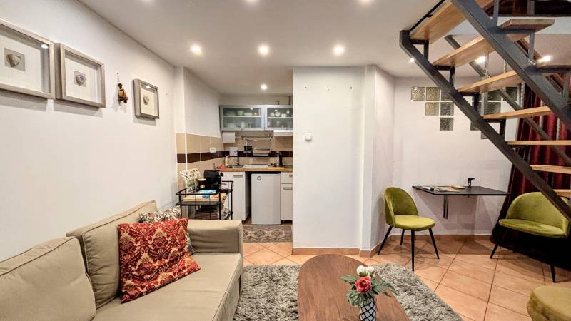 A Nyugati pályaudvartól pár perc sétára eladó egy jó állapotú, jelenleg lakásként berendezett és használt 24 nm-es ingatlan.Utcai bejárattal is rendelkezik, így ideális azoknak is akik irodaként, üzletként kívánják hasznosítani - a tulajdoni lapon üzlethelyiség megnevezésű.A kellemes hangulatú, rendkívül jó térkihasználású ingatlanban a 450 cm es belmagasságnak köszönhetően egy 13nm-es állógaléria került kialakításra, mely kényelmes, szeparált hálórészt biztosít. A nyílászárók fából készültek, thermo üvegezéssel és biztonsági fóliával!A fűtést jelenleg légkondicionáló berendezés biztosítja, de alternatívaként a gázt sem kötötték ki a tulajdonosok, a konvektoros fűtés is üzemképes!Kiváló lehetőség saját lakásnak, vagy egy vállalkozás üzemeltetéséhez is.Befektetési céllal is érdemes megtekinteni, könnyen - gyorsan kiadható ingatlan!