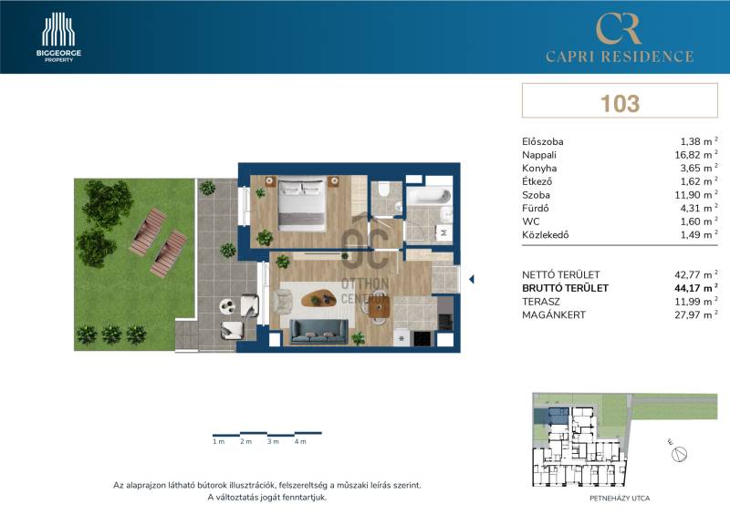 Projekt bemutatásaA Capri Residence a XIII. kerület szívében, a dinamikusan fejlődő Váci út közvetlen közelében valósul meg, amely Budapest egyik legkeresettebb lakáspiaci területe. Az elegáns, modern megjelenésű épületet, a homlokzatán végigfutó üvegkorlátos teraszok díszítik majd, a felsőbb szinteken pedig nagyteraszos lakások is elérhetők, amelyek egy része panorámás kilátást biztosít.Az épületben összesen 112 lakás kap helyet, amelyek elrendezése a stúdiótól a nappali plusz három hálószobásig terjednek. Az épületben emellett egy közösségi tér, 122 parkolóhely, 62 tároló, valamint opcionálisan elektromos autótöltővel szerelt teremgarázs beállók is megépítésre kerülnek.A műszaki felszereltség a legmagasabb szakmai trendeket követi: a Capri Residence lakóinak kényelmét mennyezeti hűtés-fűtés, háromrétegű üvegezéssel ellátott műanyag nyílászárók, smart-home előkészítés, valamint belsőépítész által összeállított belső anyagválaszték biztosítja majd. A földszinti lakásokhoz privát kertkapcsolat tartozik, emellett a társasház közös díszkerttel is rendelkezik.