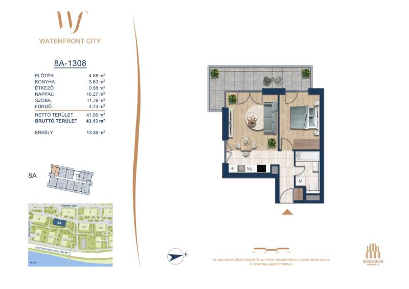 Projekt bemutatásaA projektrőlA Waterfront City egy új, modern városnegyed a 3. kerületben, ahol a természet közelsége és a városi kényelem tökéletes egyensúlyban van. A Duna-part közvetlen szomszédságában elhelyezkedő fejlesztés különleges atmoszférát kínál: a sétányt új épületek határolják, üzletekkel, kávézókkal és szolgáltatásokkal, amelyek élhető közösségi teret teremtenek.A 13 emeletes lakóépületből lenyűgöző örökpanoráma nyílik a budai hegyekre és a folyóra, a tágas teraszok pedig ideálisak a pihenéshez vagy a baráti összejövetelekhez. A zöldtetők, parkosított terek és fenntartható megoldások – mint az energiatakarékos rendszerek és okos otthon funkciók – mind hozzájárulnak a modern, környezettudatos életstílushoz.Látogass el értékesítési irodánkba, és tekintsd meg a városnegyed makettjét személyesen! Ismerd meg, milyen lesz az élet Budapest egyik legizgalmasabb új fejlesztésében!Óbuda szívébenKépzeld el, ahogy egy napsütéses délelőttön Óbuda szívében sétálsz, a Duna közelsége frissítően hat rád, miközben a Folyamőr utca, a Miklós tér és a Bogdáni út által határolt, öt hektáros területre érsz. A levegőben ott van a város történelme, mégis minden részletében a jövő hívogat.A 50 000 négyzetméteres területen egy hangulatos sétány vezet végig, amely egyenesen az óbudai Fő térre visz – mindössze 600 méterre. Ez a sétány nem csupán összeköt, hanem élményt nyújt: a Kolosy térről induló Óbudai Promenád részeként a város egyik legélhetőbb, legpezsgőbb szakaszán haladsz végig. És ha biciklivel érkeznél? A nemzetközi kerékpárút is itt halad el, Szentendre felé vezetve.Az 5. ütemben épülő 149 lakás mindegyike egyedi hangulatot kínál. Ahogy belépsz egy-egy otthonba, a hatalmas üvegfelületeken át beáradó fény és a tágas, szellős terek azonnal magukkal ragadnak. A kilátás? A Kaszap István park zöldje nyújt békét, míg a felsőbb emeletekről a Budai-hegység örökpanorámája tárul eléd – minden nap egy új festmény az ablakodban.A 6. ütemben 316 modern lakás épül, tágas teraszokkal és lenyűgöző kilátással a Dunára és a budai hegyekre. A lakók kényelmét őrszolgálat, kamerarendszer, mélygarázs, vendéglátóhelyek, belső park, játszótér és E-autó töltők szolgálják. Ez a projekt utolsó üteme, amely még közvetlen Duna-parti kapcsolattal rendelkezik.