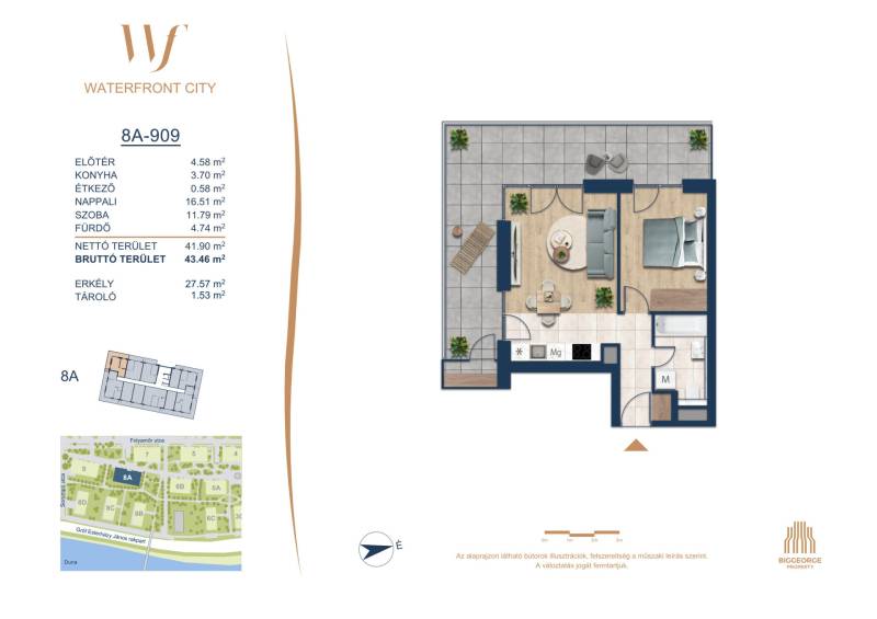 Projekt bemutatásaA projektrőlA Waterfront City egy új, modern városnegyed a 3. kerületben, ahol a természet közelsége és a városi kényelem tökéletes egyensúlyban van. A Duna-part közvetlen szomszédságában elhelyezkedő fejlesztés különleges atmoszférát kínál: a sétányt új épületek határolják, üzletekkel, kávézókkal és szolgáltatásokkal, amelyek élhető közösségi teret teremtenek.A 13 emeletes lakóépületből lenyűgöző örökpanoráma nyílik a budai hegyekre és a folyóra, a tágas teraszok pedig ideálisak a pihenéshez vagy a baráti összejövetelekhez. A zöldtetők, parkosított terek és fenntartható megoldások – mint az energiatakarékos rendszerek és okos otthon funkciók – mind hozzájárulnak a modern, környezettudatos életstílushoz.Látogass el értékesítési irodánkba, és tekintsd meg a városnegyed makettjét személyesen! Ismerd meg, milyen lesz az élet Budapest egyik legizgalmasabb új fejlesztésében!Óbuda szívébenKépzeld el, ahogy egy napsütéses délelőttön Óbuda szívében sétálsz, a Duna közelsége frissítően hat rád, miközben a Folyamőr utca, a Miklós tér és a Bogdáni út által határolt, öt hektáros területre érsz. A levegőben ott van a város történelme, mégis minden részletében a jövő hívogat.A 50 000 négyzetméteres területen egy hangulatos sétány vezet végig, amely egyenesen az óbudai Fő térre visz – mindössze 600 méterre. Ez a sétány nem csupán összeköt, hanem élményt nyújt: a Kolosy térről induló Óbudai Promenád részeként a város egyik legélhetőbb, legpezsgőbb szakaszán haladsz végig. És ha biciklivel érkeznél? A nemzetközi kerékpárút is itt halad el, Szentendre felé vezetve.Az 5. ütemben épülő 149 lakás mindegyike egyedi hangulatot kínál. Ahogy belépsz egy-egy otthonba, a hatalmas üvegfelületeken át beáradó fény és a tágas, szellős terek azonnal magukkal ragadnak. A kilátás? A Kaszap István park zöldje nyújt békét, míg a felsőbb emeletekről a Budai-hegység örökpanorámája tárul eléd – minden nap egy új festmény az ablakodban.A 6. ütemben 316 modern lakás épül, tágas teraszokkal és lenyűgöző kilátással a Dunára és a budai hegyekre. A lakók kényelmét őrszolgálat, kamerarendszer, mélygarázs, vendéglátóhelyek, belső park, játszótér és E-autó töltők szolgálják. Ez a projekt utolsó üteme, amely még közvetlen Duna-parti kapcsolattal rendelkezik.