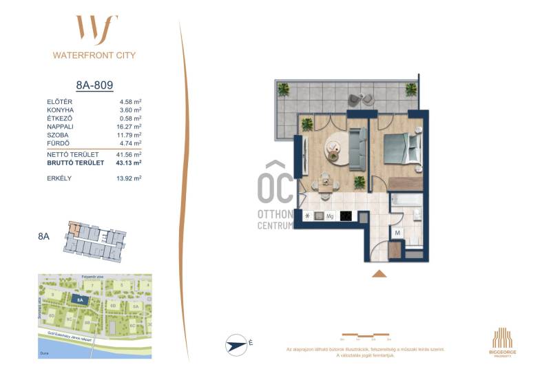 Projekt bemutatásaA projektrőlA Waterfront City egy új, modern városnegyed a 3. kerületben, ahol a természet közelsége és a városi kényelem tökéletes egyensúlyban van. A Duna-part közvetlen szomszédságában elhelyezkedő fejlesztés különleges atmoszférát kínál: a sétányt új épületek határolják, üzletekkel, kávézókkal és szolgáltatásokkal, amelyek élhető közösségi teret teremtenek.A 13 emeletes lakóépületből lenyűgöző örökpanoráma nyílik a budai hegyekre és a folyóra, a tágas teraszok pedig ideálisak a pihenéshez vagy a baráti összejövetelekhez. A zöldtetők, parkosított terek és fenntartható megoldások – mint az energiatakarékos rendszerek és okos otthon funkciók – mind hozzájárulnak a modern, környezettudatos életstílushoz.Látogass el értékesítési irodánkba, és tekintsd meg a városnegyed makettjét személyesen! Ismerd meg, milyen lesz az élet Budapest egyik legizgalmasabb új fejlesztésében!Óbuda szívébenKépzeld el, ahogy egy napsütéses délelőttön Óbuda szívében sétálsz, a Duna közelsége frissítően hat rád, miközben a Folyamőr utca, a Miklós tér és a Bogdáni út által határolt, öt hektáros területre érsz. A levegőben ott van a város történelme, mégis minden részletében a jövő hívogat.A 50 000 négyzetméteres területen egy hangulatos sétány vezet végig, amely egyenesen az óbudai Fő térre visz – mindössze 600 méterre. Ez a sétány nem csupán összeköt, hanem élményt nyújt: a Kolosy térről induló Óbudai Promenád részeként a város egyik legélhetőbb, legpezsgőbb szakaszán haladsz végig. És ha biciklivel érkeznél? A nemzetközi kerékpárút is itt halad el, Szentendre felé vezetve.Az 5. ütemben épülő 149 lakás mindegyike egyedi hangulatot kínál. Ahogy belépsz egy-egy otthonba, a hatalmas üvegfelületeken át beáradó fény és a tágas, szellős terek azonnal magukkal ragadnak. A kilátás? A Kaszap István park zöldje nyújt békét, míg a felsőbb emeletekről a Budai-hegység örökpanorámája tárul eléd – minden nap egy új festmény az ablakodban.A 6. ütemben 316 modern lakás épül, tágas teraszokkal és lenyűgöző kilátással a Dunára és a budai hegyekre. A lakók kényelmét őrszolgálat, kamerarendszer, mélygarázs, vendéglátóhelyek, belső park, játszótér és E-autó töltők szolgálják. Ez a projekt utolsó üteme, amely még közvetlen Duna-parti kapcsolattal rendelkezik.