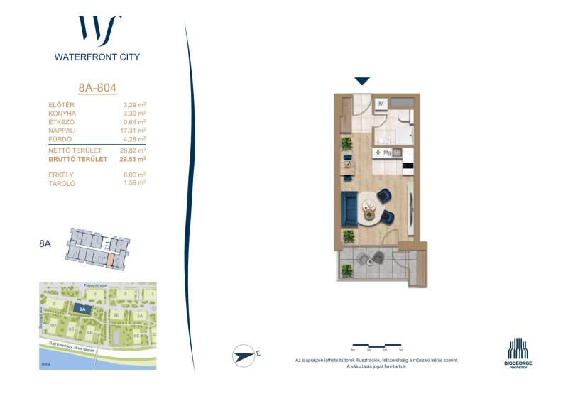 Projekt bemutatásaA projektrőlA Waterfront City egy új, modern városnegyed a 3. kerületben, ahol a természet közelsége és a városi kényelem tökéletes egyensúlyban van. A Duna-part közvetlen szomszédságában elhelyezkedő fejlesztés különleges atmoszférát kínál: a sétányt új épületek határolják, üzletekkel, kávézókkal és szolgáltatásokkal, amelyek élhető közösségi teret teremtenek.A 13 emeletes lakóépületből lenyűgöző örökpanoráma nyílik a budai hegyekre és a folyóra, a tágas teraszok pedig ideálisak a pihenéshez vagy a baráti összejövetelekhez. A zöldtetők, parkosított terek és fenntartható megoldások – mint az energiatakarékos rendszerek és okos otthon funkciók – mind hozzájárulnak a modern, környezettudatos életstílushoz.Látogass el értékesítési irodánkba, és tekintsd meg a városnegyed makettjét személyesen! Ismerd meg, milyen lesz az élet Budapest egyik legizgalmasabb új fejlesztésében!Óbuda szívébenKépzeld el, ahogy egy napsütéses délelőttön Óbuda szívében sétálsz, a Duna közelsége frissítően hat rád, miközben a Folyamőr utca, a Miklós tér és a Bogdáni út által határolt, öt hektáros területre érsz. A levegőben ott van a város történelme, mégis minden részletében a jövő hívogat.A 50 000 négyzetméteres területen egy hangulatos sétány vezet végig, amely egyenesen az óbudai Fő térre visz – mindössze 600 méterre. Ez a sétány nem csupán összeköt, hanem élményt nyújt: a Kolosy térről induló Óbudai Promenád részeként a város egyik legélhetőbb, legpezsgőbb szakaszán haladsz végig. És ha biciklivel érkeznél? A nemzetközi kerékpárút is itt halad el, Szentendre felé vezetve.Az 5. ütemben épülő 149 lakás mindegyike egyedi hangulatot kínál. Ahogy belépsz egy-egy otthonba, a hatalmas üvegfelületeken át beáradó fény és a tágas, szellős terek azonnal magukkal ragadnak. A kilátás? A Kaszap István park zöldje nyújt békét, míg a felsőbb emeletekről a Budai-hegység örökpanorámája tárul eléd – minden nap egy új festmény az ablakodban.A 6. ütemben 316 modern lakás épül, tágas teraszokkal és lenyűgöző kilátással a Dunára és a budai hegyekre. A lakók kényelmét őrszolgálat, kamerarendszer, mélygarázs, vendéglátóhelyek, belső park, játszótér és E-autó töltők szolgálják. Ez a projekt utolsó üteme, amely még közvetlen Duna-parti kapcsolattal rendelkezik.