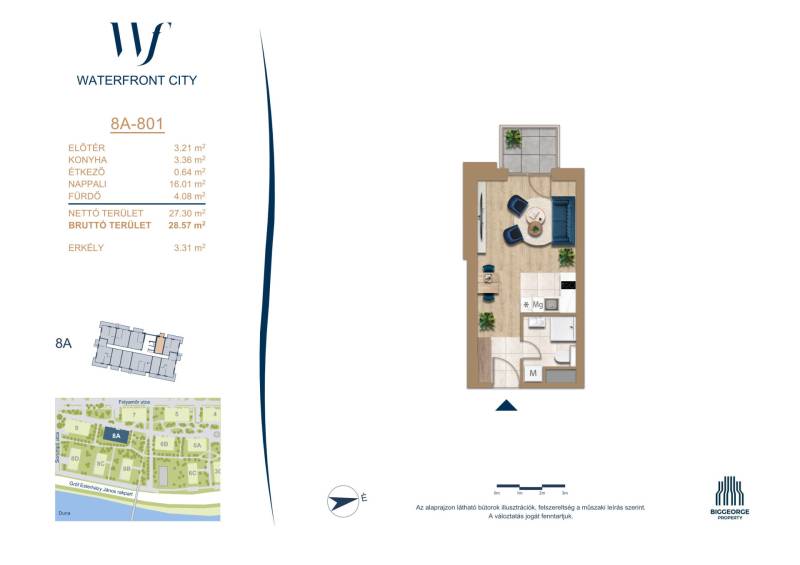 Projekt bemutatásaA projektrőlA Waterfront City egy új, modern városnegyed a 3. kerületben, ahol a természet közelsége és a városi kényelem tökéletes egyensúlyban van. A Duna-part közvetlen szomszédságában elhelyezkedő fejlesztés különleges atmoszférát kínál: a sétányt új épületek határolják, üzletekkel, kávézókkal és szolgáltatásokkal, amelyek élhető közösségi teret teremtenek.A 13 emeletes lakóépületből lenyűgöző örökpanoráma nyílik a budai hegyekre és a folyóra, a tágas teraszok pedig ideálisak a pihenéshez vagy a baráti összejövetelekhez. A zöldtetők, parkosított terek és fenntartható megoldások – mint az energiatakarékos rendszerek és okos otthon funkciók – mind hozzájárulnak a modern, környezettudatos életstílushoz.Látogass el értékesítési irodánkba, és tekintsd meg a városnegyed makettjét személyesen! Ismerd meg, milyen lesz az élet Budapest egyik legizgalmasabb új fejlesztésében!Óbuda szívébenKépzeld el, ahogy egy napsütéses délelőttön Óbuda szívében sétálsz, a Duna közelsége frissítően hat rád, miközben a Folyamőr utca, a Miklós tér és a Bogdáni út által határolt, öt hektáros területre érsz. A levegőben ott van a város történelme, mégis minden részletében a jövő hívogat.A 50 000 négyzetméteres területen egy hangulatos sétány vezet végig, amely egyenesen az óbudai Fő térre visz – mindössze 600 méterre. Ez a sétány nem csupán összeköt, hanem élményt nyújt: a Kolosy térről induló Óbudai Promenád részeként a város egyik legélhetőbb, legpezsgőbb szakaszán haladsz végig. És ha biciklivel érkeznél? A nemzetközi kerékpárút is itt halad el, Szentendre felé vezetve.Az 5. ütemben épülő 149 lakás mindegyike egyedi hangulatot kínál. Ahogy belépsz egy-egy otthonba, a hatalmas üvegfelületeken át beáradó fény és a tágas, szellős terek azonnal magukkal ragadnak. A kilátás? A Kaszap István park zöldje nyújt békét, míg a felsőbb emeletekről a Budai-hegység örökpanorámája tárul eléd – minden nap egy új festmény az ablakodban.A 6. ütemben 316 modern lakás épül, tágas teraszokkal és lenyűgöző kilátással a Dunára és a budai hegyekre. A lakók kényelmét őrszolgálat, kamerarendszer, mélygarázs, vendéglátóhelyek, belső park, játszótér és E-autó töltők szolgálják. Ez a projekt utolsó üteme, amely még közvetlen Duna-parti kapcsolattal rendelkezik.
