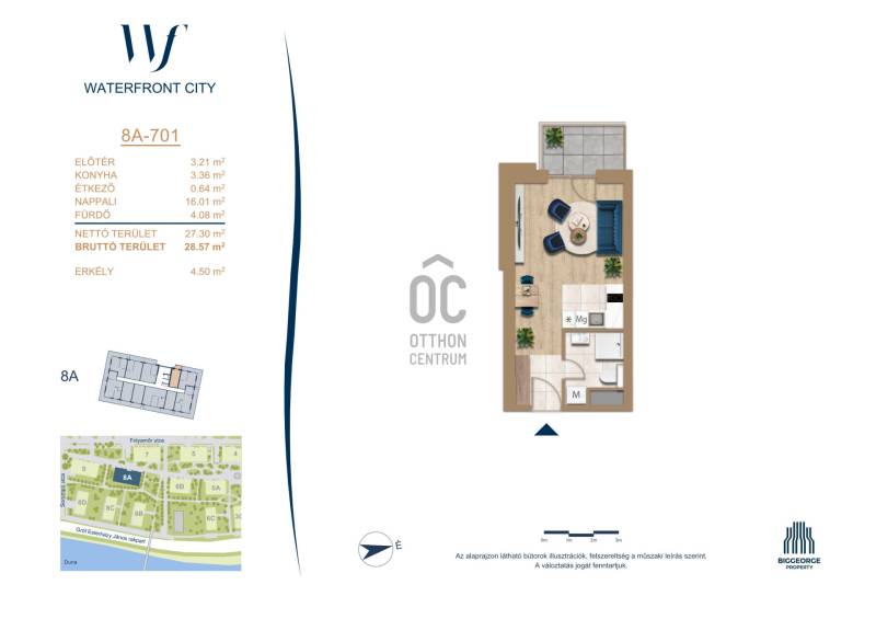 Projekt bemutatásaA projektrőlA Waterfront City egy új, modern városnegyed a 3. kerületben, ahol a természet közelsége és a városi kényelem tökéletes egyensúlyban van. A Duna-part közvetlen szomszédságában elhelyezkedő fejlesztés különleges atmoszférát kínál: a sétányt új épületek határolják, üzletekkel, kávézókkal és szolgáltatásokkal, amelyek élhető közösségi teret teremtenek.A 13 emeletes lakóépületből lenyűgöző örökpanoráma nyílik a budai hegyekre és a folyóra, a tágas teraszok pedig ideálisak a pihenéshez vagy a baráti összejövetelekhez. A zöldtetők, parkosított terek és fenntartható megoldások – mint az energiatakarékos rendszerek és okos otthon funkciók – mind hozzájárulnak a modern, környezettudatos életstílushoz.Látogass el értékesítési irodánkba, és tekintsd meg a városnegyed makettjét személyesen! Ismerd meg, milyen lesz az élet Budapest egyik legizgalmasabb új fejlesztésében!Óbuda szívébenKépzeld el, ahogy egy napsütéses délelőttön Óbuda szívében sétálsz, a Duna közelsége frissítően hat rád, miközben a Folyamőr utca, a Miklós tér és a Bogdáni út által határolt, öt hektáros területre érsz. A levegőben ott van a város történelme, mégis minden részletében a jövő hívogat.A 50 000 négyzetméteres területen egy hangulatos sétány vezet végig, amely egyenesen az óbudai Fő térre visz – mindössze 600 méterre. Ez a sétány nem csupán összeköt, hanem élményt nyújt: a Kolosy térről induló Óbudai Promenád részeként a város egyik legélhetőbb, legpezsgőbb szakaszán haladsz végig. És ha biciklivel érkeznél? A nemzetközi kerékpárút is itt halad el, Szentendre felé vezetve.Az 5. ütemben épülő 149 lakás mindegyike egyedi hangulatot kínál. Ahogy belépsz egy-egy otthonba, a hatalmas üvegfelületeken át beáradó fény és a tágas, szellős terek azonnal magukkal ragadnak. A kilátás? A Kaszap István park zöldje nyújt békét, míg a felsőbb emeletekről a Budai-hegység örökpanorámája tárul eléd – minden nap egy új festmény az ablakodban.A 6. ütemben 316 modern lakás épül, tágas teraszokkal és lenyűgöző kilátással a Dunára és a budai hegyekre. A lakók kényelmét őrszolgálat, kamerarendszer, mélygarázs, vendéglátóhelyek, belső park, játszótér és E-autó töltők szolgálják. Ez a projekt utolsó üteme, amely még közvetlen Duna-parti kapcsolattal rendelkezik.