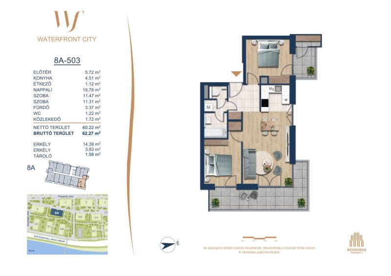 Projekt bemutatásaA projektrőlA Waterfront City egy új, modern városnegyed a 3. kerületben, ahol a természet közelsége és a városi kényelem tökéletes egyensúlyban van. A Duna-part közvetlen szomszédságában elhelyezkedő fejlesztés különleges atmoszférát kínál: a sétányt új épületek határolják, üzletekkel, kávézókkal és szolgáltatásokkal, amelyek élhető közösségi teret teremtenek.A 13 emeletes lakóépületből lenyűgöző örökpanoráma nyílik a budai hegyekre és a folyóra, a tágas teraszok pedig ideálisak a pihenéshez vagy a baráti összejövetelekhez. A zöldtetők, parkosított terek és fenntartható megoldások – mint az energiatakarékos rendszerek és okos otthon funkciók – mind hozzájárulnak a modern, környezettudatos életstílushoz.Látogass el értékesítési irodánkba, és tekintsd meg a városnegyed makettjét személyesen! Ismerd meg, milyen lesz az élet Budapest egyik legizgalmasabb új fejlesztésében!Óbuda szívébenKépzeld el, ahogy egy napsütéses délelőttön Óbuda szívében sétálsz, a Duna közelsége frissítően hat rád, miközben a Folyamőr utca, a Miklós tér és a Bogdáni út által határolt, öt hektáros területre érsz. A levegőben ott van a város történelme, mégis minden részletében a jövő hívogat.A 50 000 négyzetméteres területen egy hangulatos sétány vezet végig, amely egyenesen az óbudai Fő térre visz – mindössze 600 méterre. Ez a sétány nem csupán összeköt, hanem élményt nyújt: a Kolosy térről induló Óbudai Promenád részeként a város egyik legélhetőbb, legpezsgőbb szakaszán haladsz végig. És ha biciklivel érkeznél? A nemzetközi kerékpárút is itt halad el, Szentendre felé vezetve.Az 5. ütemben épülő 149 lakás mindegyike egyedi hangulatot kínál. Ahogy belépsz egy-egy otthonba, a hatalmas üvegfelületeken át beáradó fény és a tágas, szellős terek azonnal magukkal ragadnak. A kilátás? A Kaszap István park zöldje nyújt békét, míg a felsőbb emeletekről a Budai-hegység örökpanorámája tárul eléd – minden nap egy új festmény az ablakodban.A 6. ütemben 316 modern lakás épül, tágas teraszokkal és lenyűgöző kilátással a Dunára és a budai hegyekre. A lakók kényelmét őrszolgálat, kamerarendszer, mélygarázs, vendéglátóhelyek, belső park, játszótér és E-autó töltők szolgálják. Ez a projekt utolsó üteme, amely még közvetlen Duna-parti kapcsolattal rendelkezik.