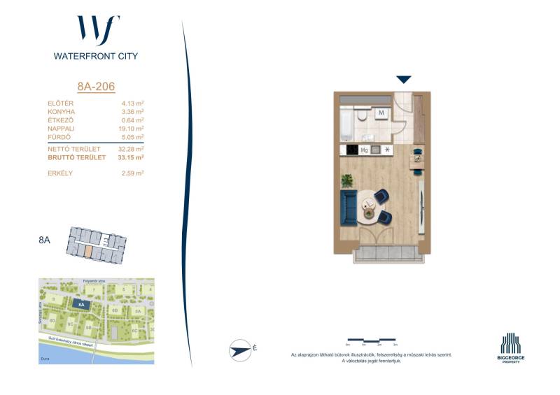 Projekt bemutatásaA projektrőlA Waterfront City egy új, modern városnegyed a 3. kerületben, ahol a természet közelsége és a városi kényelem tökéletes egyensúlyban van. A Duna-part közvetlen szomszédságában elhelyezkedő fejlesztés különleges atmoszférát kínál: a sétányt új épületek határolják, üzletekkel, kávézókkal és szolgáltatásokkal, amelyek élhető közösségi teret teremtenek.A 13 emeletes lakóépületből lenyűgöző örökpanoráma nyílik a budai hegyekre és a folyóra, a tágas teraszok pedig ideálisak a pihenéshez vagy a baráti összejövetelekhez. A zöldtetők, parkosított terek és fenntartható megoldások – mint az energiatakarékos rendszerek és okos otthon funkciók – mind hozzájárulnak a modern, környezettudatos életstílushoz.Látogass el értékesítési irodánkba, és tekintsd meg a városnegyed makettjét személyesen! Ismerd meg, milyen lesz az élet Budapest egyik legizgalmasabb új fejlesztésében!Óbuda szívébenKépzeld el, ahogy egy napsütéses délelőttön Óbuda szívében sétálsz, a Duna közelsége frissítően hat rád, miközben a Folyamőr utca, a Miklós tér és a Bogdáni út által határolt, öt hektáros területre érsz. A levegőben ott van a város történelme, mégis minden részletében a jövő hívogat.A 50 000 négyzetméteres területen egy hangulatos sétány vezet végig, amely egyenesen az óbudai Fő térre visz – mindössze 600 méterre. Ez a sétány nem csupán összeköt, hanem élményt nyújt: a Kolosy térről induló Óbudai Promenád részeként a város egyik legélhetőbb, legpezsgőbb szakaszán haladsz végig. És ha biciklivel érkeznél? A nemzetközi kerékpárút is itt halad el, Szentendre felé vezetve.Az 5. ütemben épülő 149 lakás mindegyike egyedi hangulatot kínál. Ahogy belépsz egy-egy otthonba, a hatalmas üvegfelületeken át beáradó fény és a tágas, szellős terek azonnal magukkal ragadnak. A kilátás? A Kaszap István park zöldje nyújt békét, míg a felsőbb emeletekről a Budai-hegység örökpanorámája tárul eléd – minden nap egy új festmény az ablakodban.A 6. ütemben 316 modern lakás épül, tágas teraszokkal és lenyűgöző kilátással a Dunára és a budai hegyekre. A lakók kényelmét őrszolgálat, kamerarendszer, mélygarázs, vendéglátóhelyek, belső park, játszótér és E-autó töltők szolgálják. Ez a projekt utolsó üteme, amely még közvetlen Duna-parti kapcsolattal rendelkezik.