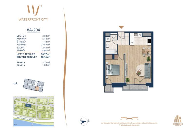 Projekt bemutatásaA projektrőlA Waterfront City egy új, modern városnegyed a 3. kerületben, ahol a természet közelsége és a városi kényelem tökéletes egyensúlyban van. A Duna-part közvetlen szomszédságában elhelyezkedő fejlesztés különleges atmoszférát kínál: a sétányt új épületek határolják, üzletekkel, kávézókkal és szolgáltatásokkal, amelyek élhető közösségi teret teremtenek.A 13 emeletes lakóépületből lenyűgöző örökpanoráma nyílik a budai hegyekre és a folyóra, a tágas teraszok pedig ideálisak a pihenéshez vagy a baráti összejövetelekhez. A zöldtetők, parkosított terek és fenntartható megoldások – mint az energiatakarékos rendszerek és okos otthon funkciók – mind hozzájárulnak a modern, környezettudatos életstílushoz.Látogass el értékesítési irodánkba, és tekintsd meg a városnegyed makettjét személyesen! Ismerd meg, milyen lesz az élet Budapest egyik legizgalmasabb új fejlesztésében!Óbuda szívébenKépzeld el, ahogy egy napsütéses délelőttön Óbuda szívében sétálsz, a Duna közelsége frissítően hat rád, miközben a Folyamőr utca, a Miklós tér és a Bogdáni út által határolt, öt hektáros területre érsz. A levegőben ott van a város történelme, mégis minden részletében a jövő hívogat.A 50 000 négyzetméteres területen egy hangulatos sétány vezet végig, amely egyenesen az óbudai Fő térre visz – mindössze 600 méterre. Ez a sétány nem csupán összeköt, hanem élményt nyújt: a Kolosy térről induló Óbudai Promenád részeként a város egyik legélhetőbb, legpezsgőbb szakaszán haladsz végig. És ha biciklivel érkeznél? A nemzetközi kerékpárút is itt halad el, Szentendre felé vezetve.Az 5. ütemben épülő 149 lakás mindegyike egyedi hangulatot kínál. Ahogy belépsz egy-egy otthonba, a hatalmas üvegfelületeken át beáradó fény és a tágas, szellős terek azonnal magukkal ragadnak. A kilátás? A Kaszap István park zöldje nyújt békét, míg a felsőbb emeletekről a Budai-hegység örökpanorámája tárul eléd – minden nap egy új festmény az ablakodban.A 6. ütemben 316 modern lakás épül, tágas teraszokkal és lenyűgöző kilátással a Dunára és a budai hegyekre. A lakók kényelmét őrszolgálat, kamerarendszer, mélygarázs, vendéglátóhelyek, belső park, játszótér és E-autó töltők szolgálják. Ez a projekt utolsó üteme, amely még közvetlen Duna-parti kapcsolattal rendelkezik.