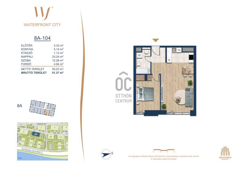 Projekt bemutatásaA projektrőlA Waterfront City egy új, modern városnegyed a 3. kerületben, ahol a természet közelsége és a városi kényelem tökéletes egyensúlyban van. A Duna-part közvetlen szomszédságában elhelyezkedő fejlesztés különleges atmoszférát kínál: a sétányt új épületek határolják, üzletekkel, kávézókkal és szolgáltatásokkal, amelyek élhető közösségi teret teremtenek.A 13 emeletes lakóépületből lenyűgöző örökpanoráma nyílik a budai hegyekre és a folyóra, a tágas teraszok pedig ideálisak a pihenéshez vagy a baráti összejövetelekhez. A zöldtetők, parkosított terek és fenntartható megoldások – mint az energiatakarékos rendszerek és okos otthon funkciók – mind hozzájárulnak a modern, környezettudatos életstílushoz.Látogass el értékesítési irodánkba, és tekintsd meg a városnegyed makettjét személyesen! Ismerd meg, milyen lesz az élet Budapest egyik legizgalmasabb új fejlesztésében!Óbuda szívébenKépzeld el, ahogy egy napsütéses délelőttön Óbuda szívében sétálsz, a Duna közelsége frissítően hat rád, miközben a Folyamőr utca, a Miklós tér és a Bogdáni út által határolt, öt hektáros területre érsz. A levegőben ott van a város történelme, mégis minden részletében a jövő hívogat.A 50 000 négyzetméteres területen egy hangulatos sétány vezet végig, amely egyenesen az óbudai Fő térre visz – mindössze 600 méterre. Ez a sétány nem csupán összeköt, hanem élményt nyújt: a Kolosy térről induló Óbudai Promenád részeként a város egyik legélhetőbb, legpezsgőbb szakaszán haladsz végig. És ha biciklivel érkeznél? A nemzetközi kerékpárút is itt halad el, Szentendre felé vezetve.Az 5. ütemben épülő 149 lakás mindegyike egyedi hangulatot kínál. Ahogy belépsz egy-egy otthonba, a hatalmas üvegfelületeken át beáradó fény és a tágas, szellős terek azonnal magukkal ragadnak. A kilátás? A Kaszap István park zöldje nyújt békét, míg a felsőbb emeletekről a Budai-hegység örökpanorámája tárul eléd – minden nap egy új festmény az ablakodban.A 6. ütemben 316 modern lakás épül, tágas teraszokkal és lenyűgöző kilátással a Dunára és a budai hegyekre. A lakók kényelmét őrszolgálat, kamerarendszer, mélygarázs, vendéglátóhelyek, belső park, játszótér és E-autó töltők szolgálják. Ez a projekt utolsó üteme, amely még közvetlen Duna-parti kapcsolattal rendelkezik.