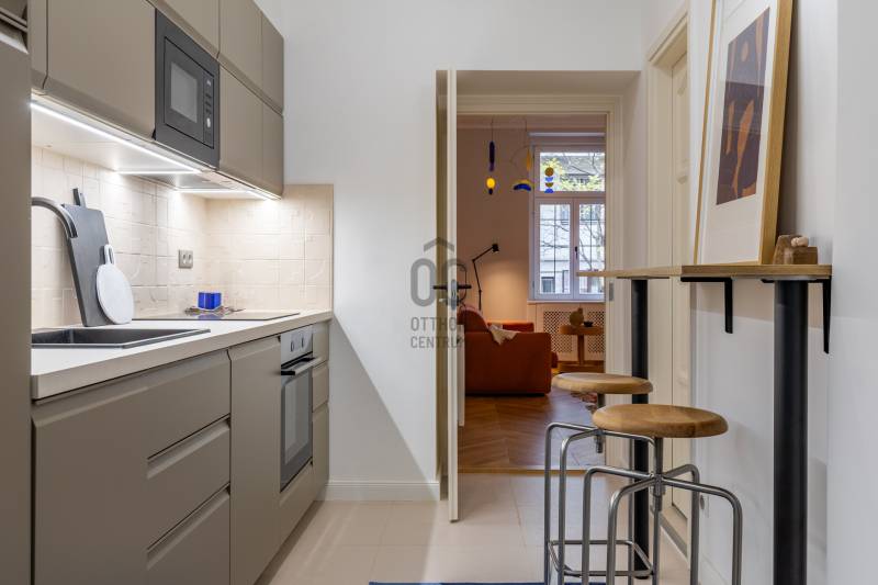 Ahol a keleti fény, a naphegyi csend és egy picike zöldre néző erkély teszi különlegessé a mindennapokat. Üdv itthon!Rövid összefoglalóBudapest I. kerületében, a Naphegy egyik csendes, kis forgalmú utcájában található ez a 42 m²-es, keleti tájolású, magasföldszinti lakás, amely tágas szobájával, külön konyhájával és egy ritka, saját használatú, belső kertre néző kiülős résszel különösen szerethető, nyugodt életteret kínál.Elhelyezkedés – Naphegy, Budapest I. kerületA Csap utca a Naphegy egyik meghitt, régi hangulatú szeglete, ahol a város tempója természetesen lassul le. A környék sajátos báját a dombos utcák, a kis léptékű házak és a közeli zöldfelületek adják — a Tabán pár percre van, a Budavári Palotanegyed és a Várkert Bazár pedig kényelmes sétatávolságra. A mindennapi élethez szükséges szolgáltatások, kisboltok és kávézók közel vannak, a közlekedés egyszerű, mégis megmarad az a bensőséges, tabáni karakter, amely miatt ez a környék külön kategória Budán.Az épületA Csap utca 1. egy barátságos, kisebb léptékű társasház, amely a Naphegy eredeti városszövetének hangulatát őrzi. A homlokzat letisztult, a közös terek rendezettek, a ház állapota ápolt és stabil. A magasföldszinti elhelyezkedésű lakás külön előnye, hogy ez a szint utolsó lakása, így a bejárat előtt nincs átjárás, nem járkál senki az ablak és az ajtó előtt — ez a társasházi környezetben ritka és értékes intimitást ad.A lakás előtt húzódó függőfolyosó ezen szakasza kizárólagos használatú kiülős rész, ami egy falakkal körbevett belső kertre néz, amely a sűrű lombkoronáival, a nagy fáival és a kert intimebb tereivel olyan, mintha egy rejtett kis udvarban ülnél — egy igazi, zöld „lélegző pont\" a városi környezetben.Ez a rész a lakás egyik legerősebb hangulati eleme:reggeli kávéhoz, olvasáshoz, egy kis kikapcsolódáshoz tökéletes, és minden évszakban külön hangulattal bír.A lakás belső világaA 42 m²-es lakás térszervezése logikus és letisztult, a keleti tájolás miatt pedig reggeltől természetes fény járja át.• Tágas szobaA fő helyiség egyszerre nappali és háló, elegánsan egyszerű, természetes színekkel, skandináv jellegű berendezhetőséggel és parkettával. A két nagy ablak levegős, világos teret ad, amely a nap első felében különösen kellemes.• Külön konyhaA felújított konyha modern, visszafogott tónusokkal, minőségi beépített gépekkel és egy elegáns pulttal, amely reggeli vagy gyors étkezések helye lehet. A helyiség jól szervezhető és praktikus.• FürdőszobaA fürdőszoba mérete kategórián felüli: világos, természetes árnyalatok, különleges mosdópult, tágas zuhany, gondosan tervezett tárolás. A részletek finomsága jól illeszkedik a lakás egész hangulatához.Összegzés és kapcsolatfelvételA Csap utcai lakás egy olyan tabáni otthon, ahol a letisztult belső terek, a keleti fény, a történeti környezet és a meghitt, saját kiülős rész együtt alkotnak egy ritka, harmonikus egységet.Ez nem csupán egy lakás — ez egy kis zöld oázis a város szívében, ahol a mindennapok ritmusa természetesen válik lassabbá és élhetőbbé.Szívesen megmutatom személyesen. Írj vagy hívj, és egyeztetünk időpontot!-------------------------------------------------------------------**Díjmentes, bankfüggetlen hiteltanácsadással támogatjuk vevő ügyfeleinket a számukra legelőnyösebb finanszírozási döntések meghozatalában.Opcionálisan igénybe vehető kiegészítő szolgáltatásainkkal – mint ügyvédi közreműködés, energetikai tanúsítvány vagy villamos biztonsági felülvizsgálat – teljes körű szakmai támogatást nyújtunk az adásvétel folyamatának minden egyes lépésénél.**-------------------------------------------------------------------A hirdetésben szereplő információk tájékoztató jellegűek. A tévedés és az árváltoztatás jogát fenntartjuk. Az esetleges elírásokért és technikai hibákért felelősséget nem vállalunk.