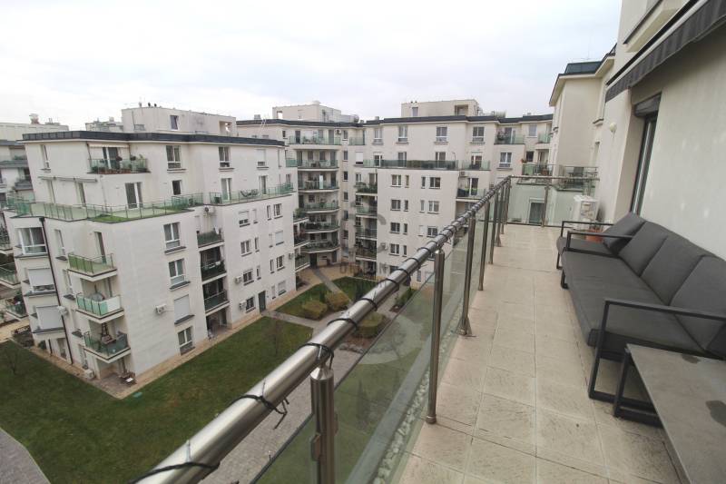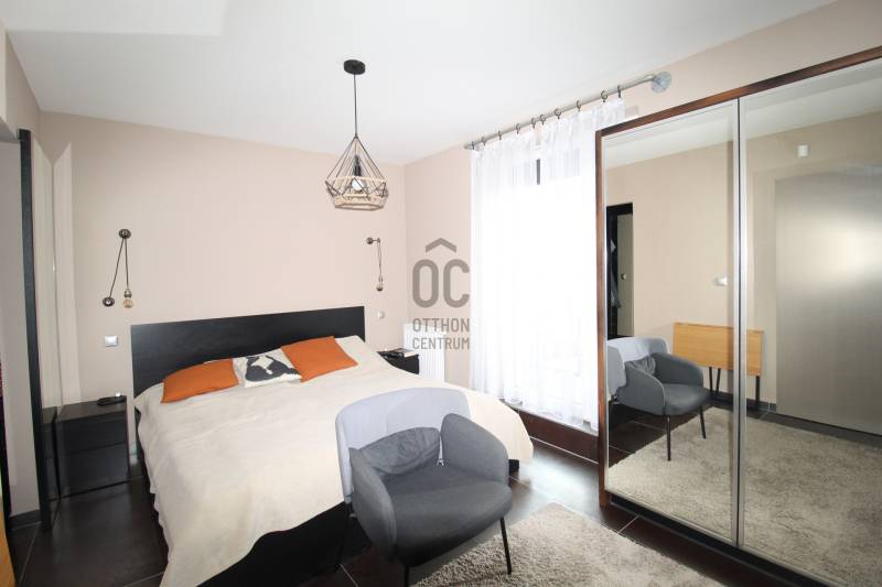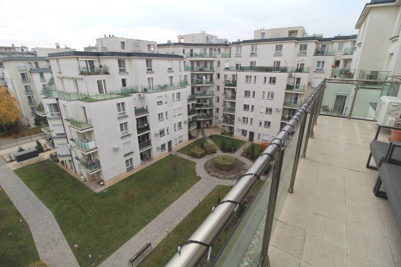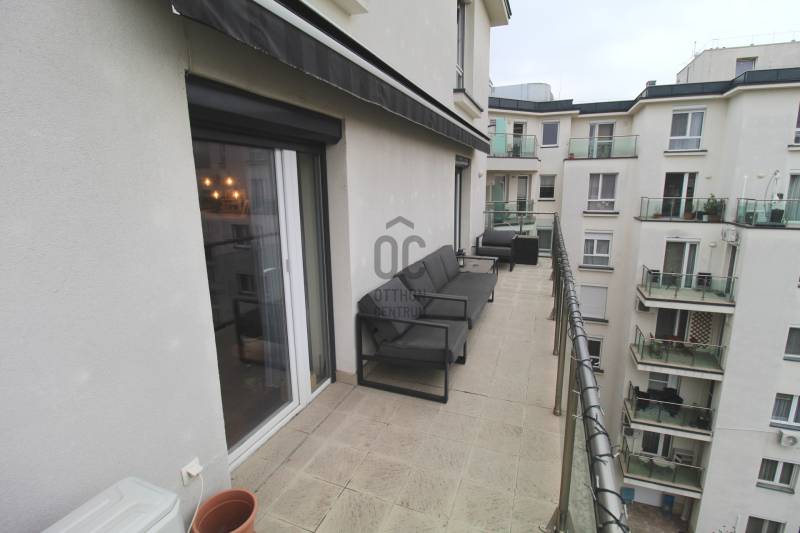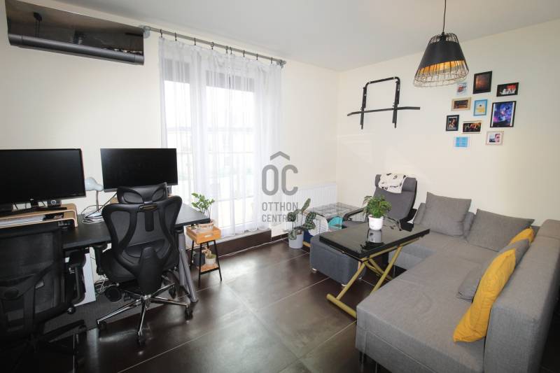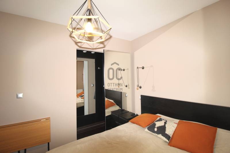 XIV. Alsórákos kedvelt lakóparkjában vált eladóvá ez az amerikai konyhás nappali + nagy hálószobás, gardróbos, 18 nm-es terasszal rendelkező, 52 nm-es, kényelmes, újszerű lakás.- jól kialakított terek, dizájnos burkolatok- minőségi konyhabútor gépekkel, beépített mosogatógép, főzőlap, sütő, mikró- egyedi tárolószekrények és hálószobából nyíló gardróbhelyiség- zuhanyzós fürdőszoba, külön wc- elektromos redőnnyel ellátott teraszajtók - a lakópark belső nagy parkjára néző terasz- távirányítóval működő, lengésérzékelővel ellátott elektromos terasz-árnyékoló (erős szél esetén összecsukódik)- kiépített riasztórendszer- nappaliban prémium klímaA minőségi beruházásban épült lakópark 2018-ban került átadásra. Teljes egésze elkerített, nagy parkosított zöldfelületekkel rendelkezik. A lakóközösség kulturált és igényes. A szigetelt épületegyüttes zárt lépcsőházai a garázsszinttől a legfelső emeletig lifttel ellátottak. Az ingatlanhoz tartozik egy 3 nm-es önálló tároló, mely a vételár részét képezi, valamint egy felszíni gépkocsibeálló, melynek ára 5 M Ft. A lakáshoz tartozik továbbá egy teremgarázs-beállóhely 6 M Ft értékben, ennek megvásárlása opcionális. A társasház házközponti fűtéssel rendelkezik, a fogyasztás mérése lakásonként egyedi mérőórákkal történik. Természetesen az áram- és vízfogyasztás is egyedi órák alapján mérhető és fizetendő. A társasházi elszámolásban a közös költséggel együtt szerepel a hideg- és meleg víz fogyasztás és a fűtés ellenértéke. Összességében a lakás fenntartási költségei rendkívül kedvezőek.A lakópark elhelyezkedéséből adódóan remek infrastruktúrával és közlekedési lehetőségekkel rendelkezik. Buszok, villamosok és metró is elérhető (autóbusz, trolibusz: 5, 81, 74, 124, 973A; metró: M1; villamos: 62, 62A, 69). Autóval az M3 autópálya bevezetője 2 percre található. A mindennapi bevásárláshoz sem kell messzire menni, a közeli boltok jól kiszolgálják a lakópark lakóinak igényét. Ez a kiváló ingatlan remek lehetőség fiatal egyedülállók, párok vagy a kényelmet és minőséget preferáló idősebbeknek egyaránt.Az ingatlan az Otthon Start lakáshitellel is elérhető.