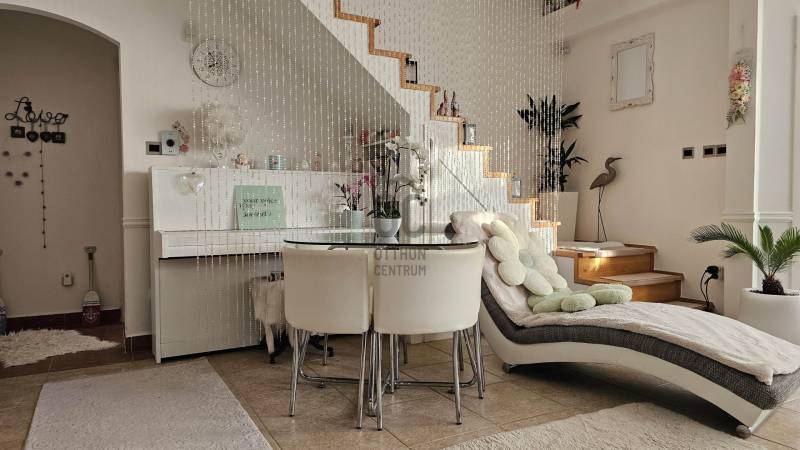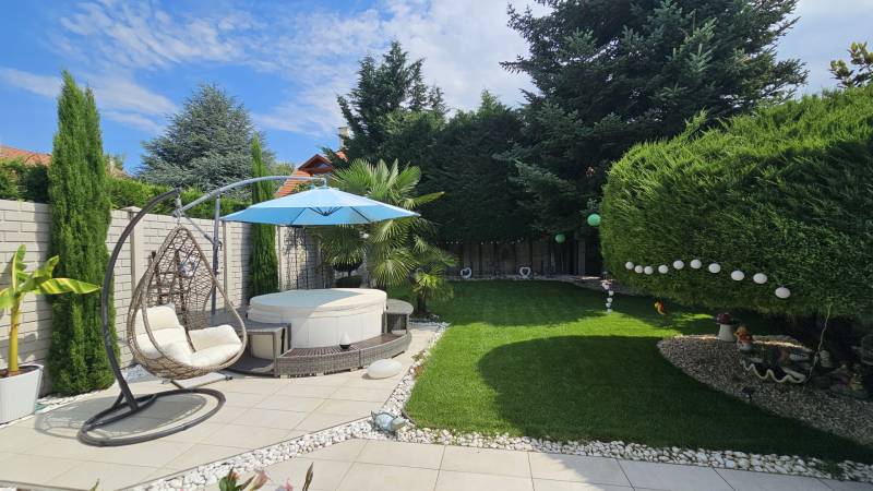 Törökbálint – Tükörhegyi csodaFelújított, kiváló műszaki állapotú, önálló hrsz.-számú sorház középső tagja eladóA 160 m²-es, kétszintes ingatlan 1997-ben épült, könnyűszerkezetes technológiával, kiváló hőszigeteléssel. A ház folyamatosan karbantartott és teljeskörűen felújított: megújult az elektromos hálózat, a fűtési rendszer, a tető, a beltér és a kert is.A ház fizikailag teljesen különálló, nincs közös fal a szomszédokkal.Műszaki jellemzők- Bosch kondenzációs kazán- Padlófűtés- Inverteres klíma- Intelligens, telefonról vezérelhető hűtés–fűtés és világítás-LED világítás- Alacsony fenntartási költségekWellness és felszereltség- Beltéri és kültéri jacuzzi-Finn szauna- Megvilágított sólappal épített sófal- Dyson légtisztítók és párásító- Riasztó- és kamerarendszerKert- Ősfás, rendezett kert- Exotikus és dísznövények- Automata öntözőrendszer- Könnyen fenntartható, intim térBelső elrendezésFöldszint – kb. 80 m²Tágas, világos terekkel rendelkező nappali–étkező–konyha, teljesen gépesített konyhabútorral és minőségi berendezésekkel.Emelet – kb. 80 m² + teraszNagy méretű hálószoba és wellness-jellegű fürdő: jacuzzi, finn szauna, sófal, légtisztító.ElhelyezkedésA környék kiemelten biztonságos, csendes, rendezett utcákkal. Gyalogosan és autóval is könnyen elérhető a teljes infrastruktúra: bevásárlóközpontok, sportlétesítmények, iskolák, óvodák, egészségügyi szolgáltatások, éttermek.Gyors közlekedési kapcsolatok: M1–M7–M0 a közelben.