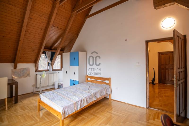 Eladó családi ház ritka dupla telken (1427 m²) Máriaremetén, a II. kerület egyik legjobb részén. A ház kiváló szerkezeti állapotban van, 1990 körül épült tömör téglából, vastag falakkal. 2016-ban teljeskörű felújításon esett át: új szigetelés, 3 rétegű műanyag nyílászárók, belső felújítások, pince is megújult.Modern fűtési rendszerek: hőszivattyú, 12 kW-os napelemrendszer (30 db panel, 2022), valamint villanybojler biztosítja az energiatakarékos működést.A ház 7 szobás, 5 WC-vel, 4 zuhanyzóval, 2 nappalival és felszerelt konyhával, így ideális nagycsaládosoknak vagy befektetőknek. A környék kiváló infrastruktúrával rendelkezik: iskola, orvos, bolt, játszótér, uszoda a közelben.