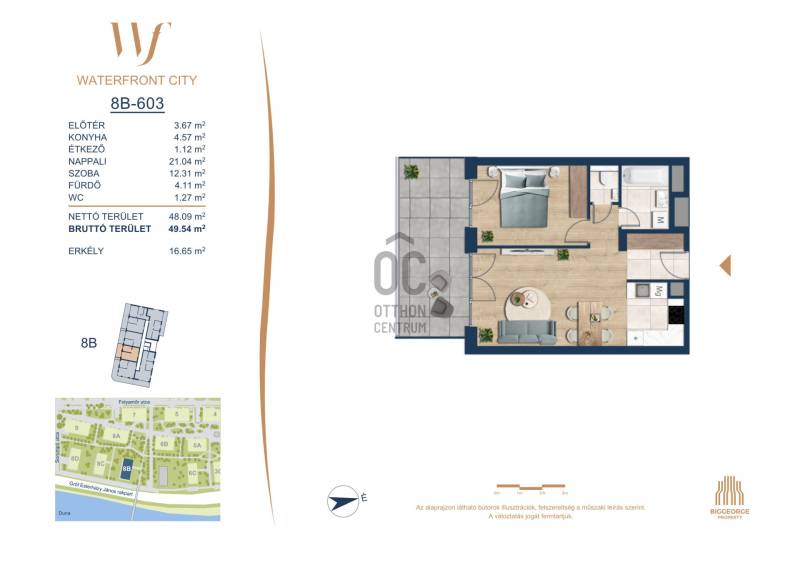 Projekt bemutatásaA projektrőlA Waterfront City egy új, modern városnegyed a 3. kerületben, ahol a természet közelsége és a városi kényelem tökéletes egyensúlyban van. A Duna-part közvetlen szomszédságában elhelyezkedő fejlesztés különleges atmoszférát kínál: a sétányt új épületek határolják, üzletekkel, kávézókkal és szolgáltatásokkal, amelyek élhető közösségi teret teremtenek.A 13 emeletes lakóépületből lenyűgöző örökpanoráma nyílik a budai hegyekre és a folyóra, a tágas teraszok pedig ideálisak a pihenéshez vagy a baráti összejövetelekhez. A zöldtetők, parkosított terek és fenntartható megoldások – mint az energiatakarékos rendszerek és okos otthon funkciók – mind hozzájárulnak a modern, környezettudatos életstílushoz.Látogass el értékesítési irodánkba, és tekintsd meg a városnegyed makettjét személyesen! Ismerd meg, milyen lesz az élet Budapest egyik legizgalmasabb új fejlesztésében!Óbuda szívébenKépzeld el, ahogy egy napsütéses délelőttön Óbuda szívében sétálsz, a Duna közelsége frissítően hat rád, miközben a Folyamőr utca, a Miklós tér és a Bogdáni út által határolt, öt hektáros területre érsz. A levegőben ott van a város történelme, mégis minden részletében a jövő hívogat.A 50 000 négyzetméteres területen egy hangulatos sétány vezet végig, amely egyenesen az óbudai Fő térre visz – mindössze 600 méterre. Ez a sétány nem csupán összeköt, hanem élményt nyújt: a Kolosy térről induló Óbudai Promenád részeként a város egyik legélhetőbb, legpezsgőbb szakaszán haladsz végig. És ha biciklivel érkeznél? A nemzetközi kerékpárút is itt halad el, Szentendre felé vezetve.Az 5. ütemben épülő 149 lakás mindegyike egyedi hangulatot kínál. Ahogy belépsz egy-egy otthonba, a hatalmas üvegfelületeken át beáradó fény és a tágas, szellős terek azonnal magukkal ragadnak. A kilátás? A Kaszap István park zöldje nyújt békét, míg a felsőbb emeletekről a Budai-hegység örökpanorámája tárul eléd – minden nap egy új festmény az ablakodban.A 6. ütemben 316 modern lakás épül, tágas teraszokkal és lenyűgöző kilátással a Dunára és a budai hegyekre. A lakók kényelmét őrszolgálat, kamerarendszer, mélygarázs, vendéglátóhelyek, belső park, játszótér és E-autó töltők szolgálják. Ez a projekt utolsó üteme, amely még közvetlen Duna-parti kapcsolattal rendelkezik.