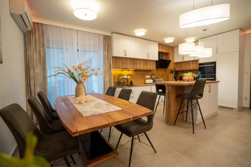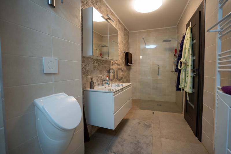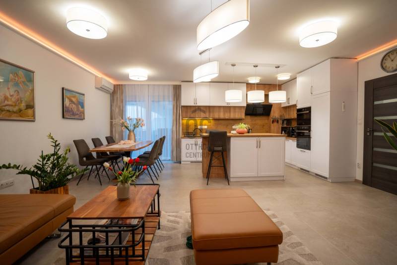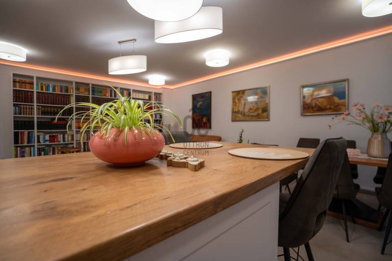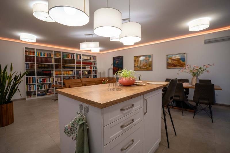IGAZI KINCS EZ A 114m2-es ELADÓ LAKÁS, AMELY A MODERN ÉLETSTÍLUS MINDEN IGÉNYÉT KIELÉGÍTI!Olyan komoly érdeklődőknek ajánlom, akik kifejezetten nagy ingatlant keresnek a belvárosban és értékelik a PRÉMIUM kivitelezést és az egyedi tervezést. A lakás belső terei világosak, modern stílusban berendezettek. Az ingatlan központi része a rendkívül elegáns konyhaszigetes elrendezésű amerikai konyha, valamint az étkező és a tágas nappali. A minden irányból megközelíthető hangulatos, fedett teraszon a reggeli kávé vagy az esti borozás igazi élménnyé válik. A lakás fűtése hőszivattyús rendszerrel, míg hűtése mennyezethűtéssel biztosított, így a komfortérzet mindig garantált. A modern LED hangulatvilágítás, a motoros redőny, a klíma a lakás praktikus és stílusos kiegészítői, melyek minden igényt kielégítenek. Az ingatlan további jellemzői:-114m2 (2 hálószoba+tágas nappali-étkező-konyha+fürdőszoba-külön mosdó+gardrób és tároló)-20m2 fedett terasz-elegáns, magas minőségű konyha beépített gépekkel-két oldalról nyitható konyhasziget reggeliző kialakítással-méretes gardrób helyiség+tároló a lakáson belül-prémium minőségű járólapok-hőszivattyús fűtés, mennyezethűtés-elektromos padlófűtés az előszobában-távvezérlésű hűtő-fűtő klíma-extra tágas fürdőszoba fürdőkáddal, épített zuhannyal-külön WC kézmosóval-beépített szekrények az előszobában, közlekedőben-rejtett világítás a nappaliban, átlagtól több elektromos csatlakozó minden helyiségben-mozgásérzékelős világítás a közlekedőben-rendezett, kulturált lépcsőház (dupla kóddal védett)-liftes épület-az ingatlanhoz GARÁZS vásárlása lehetségesAz épület akadálymentesített, így mindenki számára könnyen megközelíthető. A környék ellátottsága kiváló, a közeli üzletek, éttermek és szolgáltatások mindössze pár perc sétára találhatók. Ez a tehermentes ingatlan nem csupán egy lakás, hanem egy lehetőség arra, hogy egy igazán különleges otthonra találjon. Felsorolni is nehéz a többi extra dolgot, ami még a lakásban található, így jöjjön el és nézze meg személyesen, nem fog csalódni.Forduljon hozzám bizalommal, segítek Önnek megtalálni álmai otthonát!EZ A MEGBÍZÁS A FELEZŐCSOMAG RÉSZE!Ez az ingatlan a \"Felező csomag\" megbízási portfólióhoz tartozik. Részletek az Otthon Centrum weboldalán.