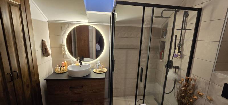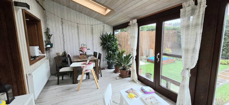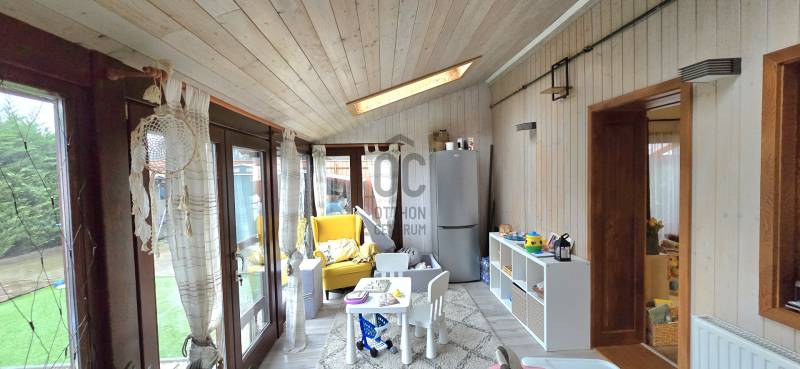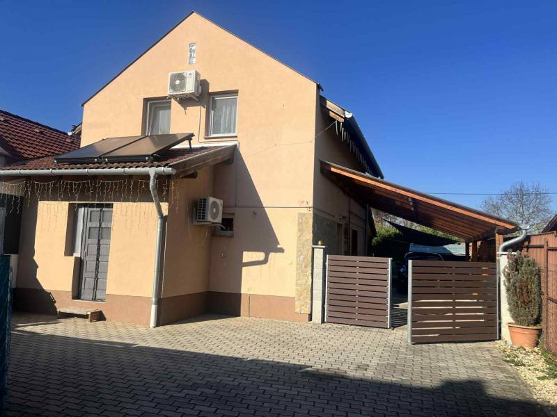 Szombathely, északnyugati részén, családiházas övezetben kínálunk egy modern, fiatalos kertesházat.Ausztriába ingázóknak ideális, hisz a határ csak 8km-re található és nem kell átvergődni a megyeszékhely forgatagán.A kertbe elektromos kapun keresztül jutunk, ahol 2 személyautónak fedett beálló lett kialakítva. A hangulatos kert meghitt intimszférát teremt, melynek része egy tároló is.Az ingatlan gázfűtés mellett rendelkezik még napkollektorral ( +puffertartály), valamint 3db modern klíma is lehetőséget biztosít a kellemes hőmérséklet elérésére.Az elmúlt évben a teljeskörű felújítás az épület szinte minden pontját érintette.A nyílászárókban lévő 3rétegű üvegezés nem csak a hőszigetelés de a hangszigetelés hatékony eleme.Az új konyhabútorban (fiókmegvilágítás, csillapított csukódás) egy korszerű víztisztító berendezés bújik meg.Tágas nappali mellett a világos, fűtött télikert növeli a teret. Nézzük címszavakban az épület főbb részeit:-Amerikai konyhás nappali-3 Szoba-2 Fürdő+Wc- Mosókonyha- Közlekedő- Dolgozószoba /Gardrób-Télikert-2 fedett gépjármű beálló- Kerti tárolóA képek magukért beszélnek. Ne habozzon, hívjon, ha kérdése merülne fel!