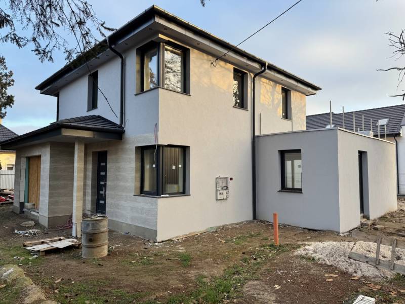Budapest XVI. kerületében, Sashalom közkedvelt részén, az Újszász utca 35. szám alatt, 578 m²-es telken megépült, önálló, új építésű családi ház eladó megbízható, számos referenciával rendelkező kivitelezőtől.Az ingatlan elkészült, a teljes szerkezet, gépészet és külső környezet kialakítása megtörtént, már csak a burkolatok, szaniterek és beltéri ajtók kiválasztása és beépítése hiányzik, így az új tulajdonos saját ízlésére szabhatja a belső tereket.A ház nettó 166,21 m² lakótérrel és 21,59 m²-es garázzsal rendelkezik, kétszintes kialakítású, modern megjelenésű és átgondolt alaprajzú.Az épület Porotherm 30-as téglából készült, 15 cm EPS homlokzati hőszigeteléssel. A padlószerkezetbe 10 cm lépésálló hőszigetelés, a födémbe 30 cm ásványgyapot került beépítésre. A ház monolit vasbeton födémmel épült, amely kiemelkedő statikai és akusztikai tulajdonságokat biztosít. A nyílászárók 6 légkamrás, háromrétegű üvegezésűek, alumínium, elektromos redőnyökkel szerelve.A fűtést és a használati melegvíz-ellátást split rendszerű hőszivattyú biztosítja padlófűtéssel, a hűtést fan-coil rendszer szolgálja minden helyiségben. Az ingatlan H tarifás villanyórával, valamint napelem előkészítéssel került kialakításra.A földszinten egy közel 59 m²-es amerikai konyhás nappali található, közvetlen 21,83 m²-es teraszkapcsolattal. Ezen a szinten helyet kapott egy hálószoba saját fürdőszobával, egy külön fürdő az előtérből nyílóan, valamint a garázs. Az emeleten három hálószoba, egy fürdőszoba, gépészeti helyiség és egy 12,52 m²-es terasz került kialakításra üveg korláttal.Az ingatlanhoz térkövezett gépkocsi-beálló és járdák, elektromos kapu, valamint riasztó- és kamerarendszer előkészítés tartozik.A még választható belső elemek az alábbi árkategóriákig kerülhetnek beépítésre:-hidegburkolat: 10 000 Ft/m²-melegburkolat: 6 000 Ft/m²-beltéri ajtók: 80 000 Ft/db-fürdőkád: 70 000 Ft-csaptelepek: 25 000 Ft/db-épített zuhany-Legrand elektromos szerelvényekAz ingatlan ideális választás azok számára, akik már elkészült, azonnal továbbfinomítható, modern és energiatakarékos otthont keresnek Budapest XVI. kerületének egyik legkedveltebb részén.INGYENES hitel tanácsadás, CSOK Plusz - Otthon Start ügyintézés!BANKFÜGGETLEN hitelcentrumunk az összes elérhető bank és hitelintézet ajánlatát versenyezteti az Ön kedvéért, ráadásul DÍJMENTESEN.- Egyedi, bankfiókban nem elérhető kamat- és díjkedvezmények- Hitelképesség vizsgálat- Idő, energia és pénz megtakarítás- Teljes hivatali ügyintézésAmennyiben hirdetésem felkeltette az érdeklődését vagy egyéb információra van szüksége hívjon bizalommal!