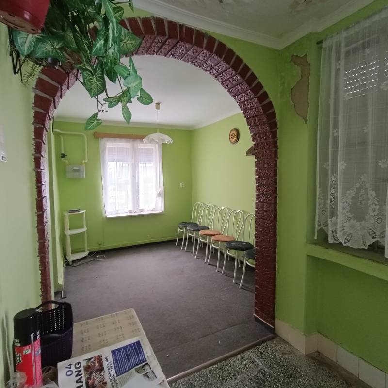 Nagykanizsa- Miklósfa városrészén kínálom megvételre ezt a 75 m2 2+1 félszobás ingatlant, a hozzá tartozó 2850 m2 területtel.Gyönyörű kertvárosi falusias, nyugodt, zöld környezetben várja az új tulajdonost.A TELEPÜLÉSEN ÓVODA, ÁLTALÁNOS ISKOLA, ÉLELMISZER BOLT, SZOLGÁLTATÓ EGYSÉGEK MŰKÖDNEK!Miklósfa- Nagykanizsától 5 km-re délre található, 1981- ben lett a város része, kerékpárút köti össze teljes egészében. Gyékényes 25 km-re elérhető.AZ INGATLAN FELÚJÍTÁST IGÉNYEL, de lakható állapotú!Az ingatlan jellemzői:- DNY-i tájolású, széles telekkel- helyiségek: 2 hálószoba, +1 félszoba, konyha- étkező, terasz vagy előszoba, fürdő- WC- a házat két ütemben építették- 1950- ben készült a ház első része vályog falazattal /2 szoba, kamra/- a többi helyiséget 1976-ban, beton alapra, tégla falazattal- víz, villany, gáz, csatorna bevezetésre került- 3X25 A rendelkezésre áll- a meleg víz ellátásáról villany bojler gondoskodik- ablakok fa szerkezetűek- a ház fűtését gázkonvektorokkal biztosítják- a tető cserép héjazatú- ásott kút az udvarban megtalálható- az ingatlan rövid időn belül birtokba vehető- CSOK, hitel igényelhető irodánkban díjmentesen, bankfüggetlen kollégánknálA széles udvarban 21 m2 garázs is biztosított.A ház folytatásában pince, ólak, fatároló és egyéb helyiség is rendelkezésre áll, illetve a telek hátsó része bérművelésben hasznosított.Ne szalassza el ezt a remek lehetőséget, amely ár-érték arányban is kedvező és az ingatlan elhelyezkedését tekintve is jó választás!Ha hirdetésem felkeltette érdeklődését, várom hívását!Irodánk teljes körű, ingyenes szolgáltatást nyújt kereső ügyfeleinknek.Szakszerű tanácsadással, hitel ügyintézéssel, energetikai tanúsítványelkészítésével és kedvező díjszabású ügyvéddel nyújtunk segítséget.