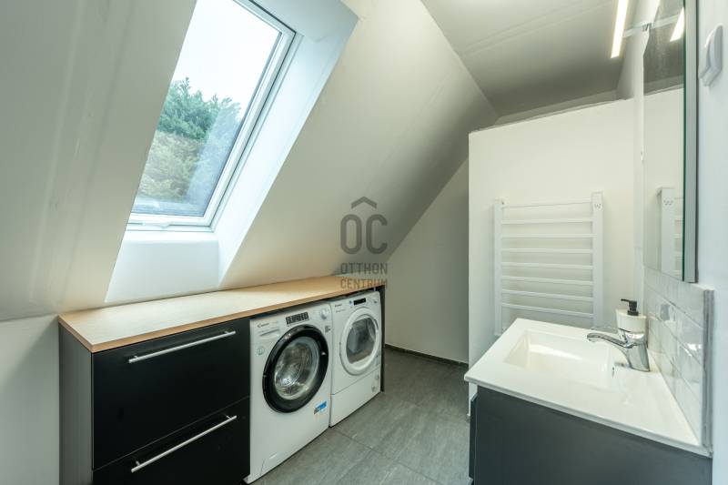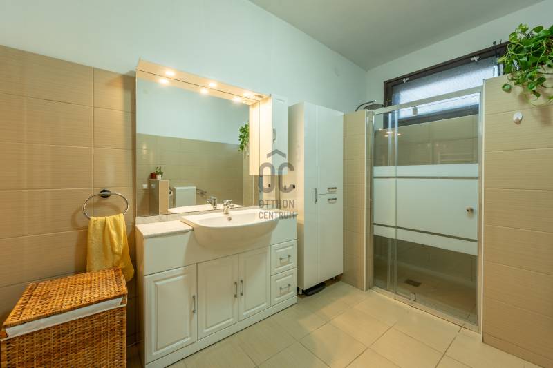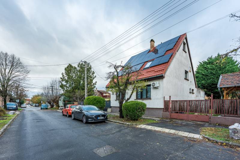 Nagy terekkel rendelkező, tágas otthon várja Önt Rákospalota kertvárosi részén, csendes utcában, jó környezetben. 70m2-es a földszint, nagy étkezős konyhával, nappalival, hálóval, kényelmes méretű fürdőszobával. A tetőtér is közel 60m2, ahol 3 szoba és egy fürdőszoba került kialakításra. 2 szobából léphetünk ki az erkélyre. A ház alatt 64m2-es, jó belmagasságú, száraz, többablakos pince, mely sok lehetőséget rejt magában. Kreativitás szerint, számos lehetőséget kínál. Kialakítható klubszoba, edzőterem, jakuzzi/szaunás wellnes részleg, csendes vállalkozás vagy akár egy új lakrész is. A kertben akár egy medence kiépítésére is van lehetőség, ehhez a rakott kút biztosítja a vizet.A terasz árnyékát egy jól termő vén diófa adja. A házhoz 40m2-es tároló is tartozik, mely használható műhelynek vagy igény szerint garázsnak átalakítható. Az ingatlan jó állapotú, több felújításon is átesett az elmúlt években. 2018-ban az alsó szint, vízcsövek, villanyvezetékek részleges cseréje. 2022-ben tető cseréplemezre cserélve. 2024-ben napelem került fel./10kw napelemrendszer került, 12kw inverter, 10kw energiatároló. /Tégla falazat 5cm perlit vakolat szigeteléssel. A fűtés elektromos panelekkel és fűtésre optimalizált klímákkal megoldott. Melegvizet gázzal működő, átfolyós vízmelegítő biztosítja. 3x20A és ipari áram is rendelkezése áll, elektromos autó otthon tölthető. Közlekedés szempontjából optimális helyen található. Budapest belvárosa fél óra alatt elérhető, éjszakai buszjáratok is vannak. Vásárlási lehetőségek tömkelege, a közelben Aldi, Lidl, Penny, Spar, kicsit távolabb a Pólus Center. Óvoda, bölcsőde, iskola, gyógyszertár, szakrendelők, minden elérhető közelségben. Jó szomszédság, rendezett, igényes környezett. Legye Ön az új boldog tulajdonos! Várom megtisztelő hívását.Ez az ingatlan a \"Felező csomag\" megbízási portfólióhoz tartozik. Részletek az Otthon Centrum weboldalán.