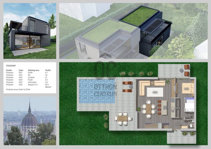 Fedezze fel ezt a kivételes adottságú, luxusminőségben kivitelezett, örökpanorámás otthont, amely a hegyoldal csendjét és Budapest egyik legkeresettebb városrészének kényelmét ötvözi. A közel 190 m²-es lakás hatalmas teraszokkal, privát kerttel, opcionálisan kültéri medencével és igény esetén kialakítható tetőterasszal kínál modern, kényelmes és jövőálló életteretPrémium műszaki tartalom – A++ energiahatékonyság, jövőálló megoldásokAz ikerházfél tervezésekor a magas minőség, az energiahatékony működés és a kényelmes mindennapok biztosítása volt a fő szempont. A kivitelezés és a gépészet minden elemében a legmodernebb technológiákat vonultatja fel.Energetika és gépészet:-A++ energiahatékonyság-DAIKIN hőszivattyús hűtés–fűtés-Padlófűtés minden helyiségben-Helyiségenként távolról szabályozható termosztát-ZENDER hővisszanyerős, páraszabályozós szellőztető rendszer(pollen- és porszűrővel)-Központi porszívó rendszerSzerkezet és nyílászárók:-15 cm külső hőszigetelés-3 rétegű ALUPROF emelő-toló nyílászárók-Motoros fixscreen árnyékolók előkészítésOkosotthon és biztonság:-Okosotthon-előkészítés-Automata öntözőrendszer előkészítés-Riasztó- és kamerarendszer előkészítés-Okos ajtó távoli ujjlenyomat-vezérlésselMegjelenés és külső terek:-Egyedi, modern, letisztult homlokzati design-Nagyméretű, panorámás teraszok: 12 m², 27 m², 27,2 m²-Saját, 386 m²-es privát kert-Opcionálisan 3×7 m-es kültéri medenceLokáció – Zöldövezeti luxus a budai hegyek ölelésében:Az ikerházfél Budapest III. kerületének egyik legkedveltebb, nyugodt mellékutcájában található. A környék ideális azoknak, akik egyszerre szeretnének csendes, természetközeli környezetben élni, mégis közel maradni a városi infrastruktúrához.Környezeti és életmódbeli előnyök:Hegyvidéki, exkluzív, csendes környezetÖrökpanorámás kilátás – a környék sport- és zöldterületeire isKiváló levegőminőségNyugodt családi házas övezet, minimális forgalommalKözeli túra- és futóútvonalak, panorámás sétalehetőségekGolf, kerékpár, természetjárás – sportos életmódnak ideálisInfrastruktúra és közlekedés:Pár perc autóval a GOBUDA Mall, Stop Shop, Kolosy tér, Óbuda főtereGyors közlekedési kapcsolatok — autóval és tömegközlekedéssel isKözelben elérhető a British International School, így családok számára kiemelten kedvezőBölcsődék, óvodák, iskolák, orvosi rendelők, sportlétesítmények – minden könnyen elérhető--------------Az ikerházfél elrendezése – Funkcionális, háromszintes kialakítás:GARÁZS SZINT – 29 m²A ház praktikus kiszolgálószintje, amely tehermentesíti a lakótereket:-Wellness helyiség-Mosókonyha-Gardrób / tárolóTökéletes helyszín edzéshez, mosáshoz, szezonális tároláshoz és wellness funkciókhoz.FÖLDSZINT – 76,8 m² + 12 m² és 27 m² teraszokA földszint a közösségi élet tere – panorámás nappalival, fantasztikus kertkapcsolattal és nagy üvegfelületekkel.Innen nyílik a saját, 386 m²-es kert, ahol akár medence is kialakítható.Helyiségek:-Előtér (4,7 m²)-WC (1,8 m²)-Gardrób (5,1 m²)-Fürdő (4,4 m²)-Hálószoba (11,4 m²) – ideális vendég- vagy dolgozószoba-Amerikai konyhás nappali (49,4 m²) – közvetlen teraszkapcsolattalKét irányba is teraszok nyílnak, így a kert több funkcionális részre is tagolható: napozóterasz, kültéri étkező, pihenőkert vagy játszórész.EMELET – 47,7 m² + 27,2 m² teraszA felső szint a család privát élettere, csodás panorámával.Helyiségek:-Közlekedő (5,8 m²)-Fürdő (5,0 m²)-Szoba (15,2 m²)-Szoba (11,5 m²)-Szoba (10,2 m²)A hatalmas, panorámás terasz tökéletes a reggeli kávéhoz, napozáshoz vagy esti pihenéshez, és igény esetén akár tetőterasz továbbfejlesztése is megoldható.PARKOLÁS:2 db teremgarázshely(kötelezően megvásárolandó – 2 × 14 M Ft)Tervezett átadás: 2026 I. negyedév