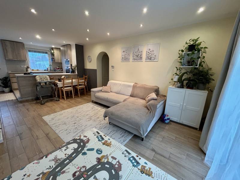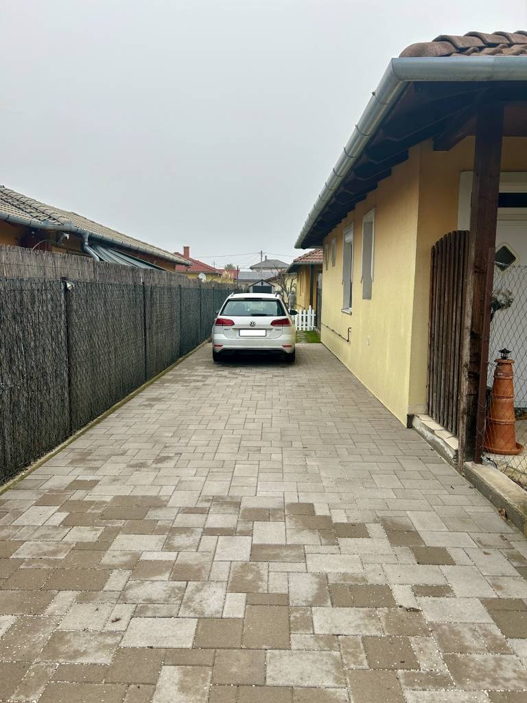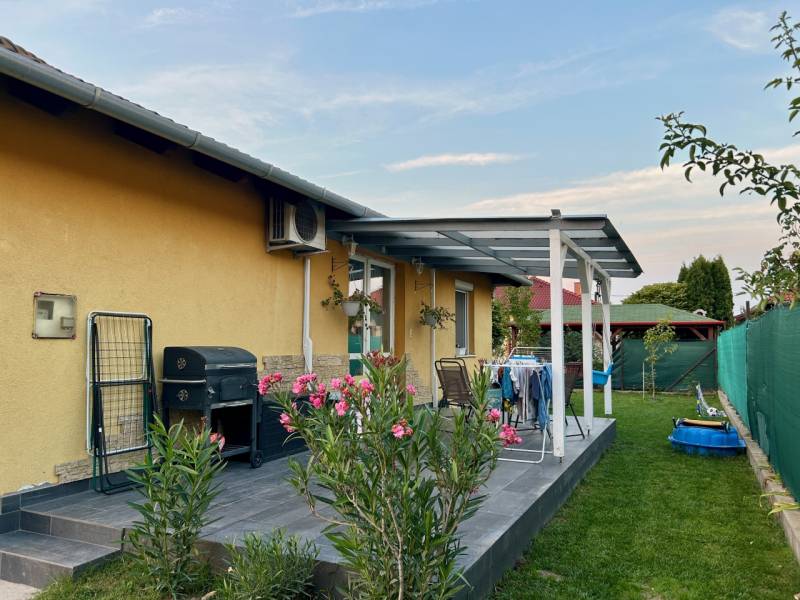 Csak a mi irodánk kínálatában elérhető ingatlan!Halásztelken újszerű és igényes ingatlanok szomszédságában, csendes kertvárosi övezetben, eladásra kínálok egy 2009-ben épült és 2023-ban esztétikailag felújított EGYSZINTES CSALÁDI HÁZAT.Az telken kettő egyszintes különálló ingatlan található, egymástól teljesen szeparált bejáratokkal és telekrészekkel.Az eladó ingatlan az utcáról nézve a telek hátsó részén helyezkedik el.Az ikerházi lakás nettó hasznos alapterülete 78,77 m² , jelenlegi kialakítása szerint amerikai konyhás nappali-étkezővel, 3 db. hálószoba, fürdőszoba, WC, terasz valamint egy kamra helyiséggel rendelkezik.Az ingatlan jogilag külön albetéttel (helyrajzi számmal) és társasházi alapító okirattal rendelkezik.Szerkezetileg 30-as téglából épült, 5 cm dryvit szigeteléssel, fűtése és a melegvíz új gáz kombi cirkóról megoldott, műanyag 2 rétegű hő és hangszigetelt nyílászárók.További információk: 1 db. inverteres Daikin klíma, redőny és szúnyoghálóval kiépítve, öntöző rendszer, fedett terasz, gépesített konyhával (az ár tartalmazza).Saját telekrésze 445 m² amely szépen parkosított, 3 db. kocsibeállási lehetőséggel, a kertben található egy kisház is amely kb. 5 m²-es.Tájolása: D-K-i, méretek és elrendezés az alaprajzon látható.Tömegközlekedés: kb. 10-12 perces sétára.Az ingatlan tehermentes, várható birtokba adás az adásvétel megkötésének napjától számított minimum 90 nap.Amennyiben Önnek a vásárláshoz szüksége lenne hitelre (OTTHON START), babaváró kölcsönre, stb., kezdeményezheti a kapcsolatfelvételt bankfüggetlen hitelügyintézőinkkel, teljesen DÍJMENTESEN.Az ingatlan részletes ismertetése és bemutatása, előre egyeztetett időpontban lehetséges, akár hétvégén is.Bővebb információkkal kapcsolatban várom jelentkezését, keressen bizalommal a hét minden napján!