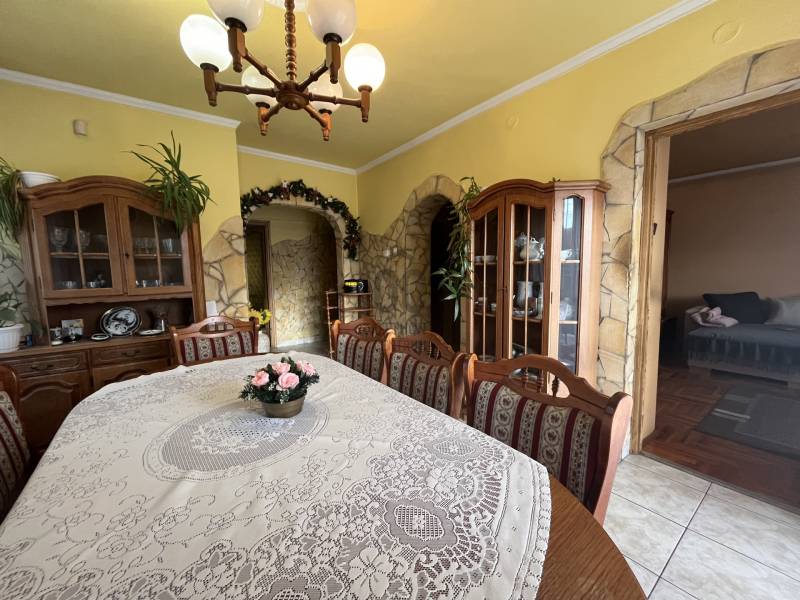 Debrecenben a Lenctelep egyik csendes, aszfaltozott utcájában, közel a Monostorpályi úthoz, ELADÓ egy 160 M2-es, dupla komfortos, akár KÉTGENERÁCIÓSnak is kitűnő, 5 szobás családi ház!Alapterület: nettó 160 m2Telek mérete:900 M2Szobák száma 2 szinten: 4 hálószoba-nappaliFürdőszobák száma: 2Építés éve: 1987Állapot: kiváló állapotú, tisztasági festés után ( alsó szinten) akár azonnal költözhetőPer- tehermentes ingatlanEz a kétszintes, részben alápincézett, garázzsal és tárolóval megépített családi ház, Debrecen egyik rendezett, családi házas övezetében található.Kialakítása, terei, akár két generáció együtt élésére is alkalmas! Szintenként 80 M2!Főbb jellemzői:- ALSÓ szinten kettő szoba- világos, tágas étkező- konyha-spájz- tágas előszoba, közlekedő- fürdőszoba, külön wc-velAz alsó szint festést igényel!Emeleti szint belülről külön feljárattal:- Nappali- étkező - Gyönyörű, 4 éves gépesített konyha azoknak akik szeretik az időtálló trendeket- hálószoba 2 - fürdőszoba-wc- közlekedőAz ingatlan 4 éve teljes felújítást kapot.,- kívülről 20 cm szigetelést és nemes vakolatot- részleges tetőcsere történt Bramac betoncserép fedést kapott- villanyvezetékek, vízvezetékek cseréje- műanyag nyílászárók redőnnyel felszerelve- fa belsőajtók lettek beépítve- festett fronttal gyönyörű konyha felgépesítve- felső szinten új burkolatok, kádas illetve zuhanyzós fürdőszoba lett kialakítva- parkosított kert dísznövényekkel- öntöző rendszer, térkövezés, gumiszőnyeg gyermek homokozóhoz- kerti világítás- könnyűszerkezetes új garázs, illetve fedett beálló kialakításaAz ingatlant ajánlom több generáció összeköltözésére, nagycsaládosoknak is kitűnő választás!Per-tehermentes ingatlan, festés után azonnal költözhető!!Amennyiben kérdése van az ingatlannal kapcsolatosan,szívesen válaszolok akár hétvégén is, Hívjon!