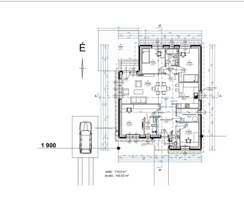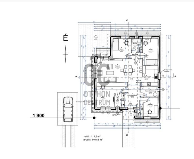 Kecskemét Hetényegyháza egyik legnyugodtabb, erdőközeli területén kínálom megvételre ezt a kivételes lehetőséget: egy 5755 m²-es, természetközeli telekre építhető nettó 122,8 m²-es, modern újépítésű családi házat.A tervezett ingatlan nappali + 3 szoba + dolgozószoba elosztásával ideális választás családoknak és otthonról dolgozóknak, akik a város közelségét, ugyanakkor a csendes, tiszta levegőjű környezetet részesítik előnyben.Főbb jellemzők:-5755 m²-es, erdős környezetű telek-Nettó 114,5 m²-es lakótér-Nappali + 3 hálószoba + dolgozószoba- kettő fürdőszoba-8,5 m²-es terasz-Egy állásos, fedett gépkocsi-beálló-2026-ban indítható kivitelezés, választható belső burkolatokkalMűszaki tartalom:-30 cm vastag vázkerámia tégla falazat-15 cm vastag EPS hőszigetelés-3 rétegű, hőszigetelő üvegezésű nyílászárók-Hőszivattyús fűtés és meleg víz-ellátás-Modern, energiatakarékos gépészeti megoldások-Minőségi hideg- és melegburkolatok-Korszerű alaprajzi kialakítás, praktikus térszervezés-Vízellátás: fúrt kútról, víz tisztítóval ellátvaKörnyezet:Az ingatlan különlegessége a nagy méretű telek, amely kivételes privát teret és nyugalmat biztosít. Az erdős környezet ideális azok számára, akik szeretnének kiszakadni a városi zajból, de továbbra is elérhető távolságban szeretnének maradni Kecskemét fontosabb pontjaitól.Építés kezdete:A kivitelezés 2025-ben megkezdhető, így a leendő tulajdonosnak lehetősége van bizonyos belső kialakítások, burkolatok és színek kiválasztására.Bővebb felvilágosításért keressen bizalommal!Kecskemét, Hetényegyháza, újépítés, nappali+4szoba, nagy telek, hőszivattyú