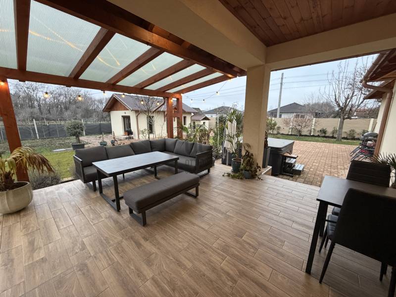 Fiatalok figyelem: Kadafalva és Ballószög között, ÚJ ÉPÍTÉSŰ övezetben, 1492 nm-es telken eladó egy 2018-ban épült, MODERN, TÁGAS családi ház és egy külön, összkomfortos, önálló épület. A főépület nettó 105 nm: amerikai konyhás nappali, 3 szoba + gardrób, fürdőszoba, külön WC, spájz és előszoba. A mindennapi KÉNYELEM része a 25 nm-es FEDETT TERASZ és a 41 nm-es DUPLA GARÁZS.Az udvarban egy 38 nm-es, ÚJ építésű, ÖNÁLLÓ LAKÓÉPÜLET található saját autóbeállóval és utcára nyíló kapuval – igény esetén TELJESEN LEVÁLASZTHATÓ. Ez FIATALOKNAK praktikus megoldás a külön élettérre vagy rugalmas hasznosításra.Műszaki tartalom: ENERGIAHATÉKONY megoldások kondenzációs kazánnal és PADLÓFŰTÉSSEL, 30-as tégla falazat, 15 cm homlokzati hőszigetelés, szórt födémszigetelés, 3 RÉTEGŰ NYÍLÁSZÁRÓK ELEKTROMOS REDŐNNYEL. Extra felszereltség: Paradox riasztórendszer TÁVOLI ELÉRÉSSEL (BIZTONSÁG), ELEKTROMOS KAPU és garázsajtók, öntözőrendszer FÚRT KÚTRÓL, 2 kerti csap kútról és 2 kerti csap városi vízről, közel 250 nm TÉRKŐ.Infrastruktúra: aszfaltos út 90 méterre; az utca hamarosan CSATORNÁVAL és SZILÁRD BURKOLATTAL rendelkezik.Fiatal korosztály számára PRAKTIKUS elrendezés, korszerű gépészet és NAGY TELEK egy helyen.Megtekintés előre egyeztetett időpontban.