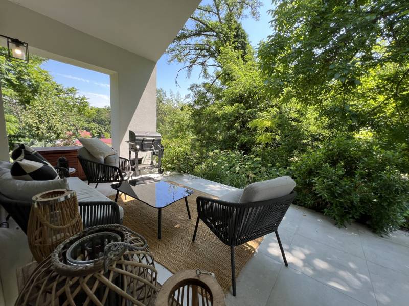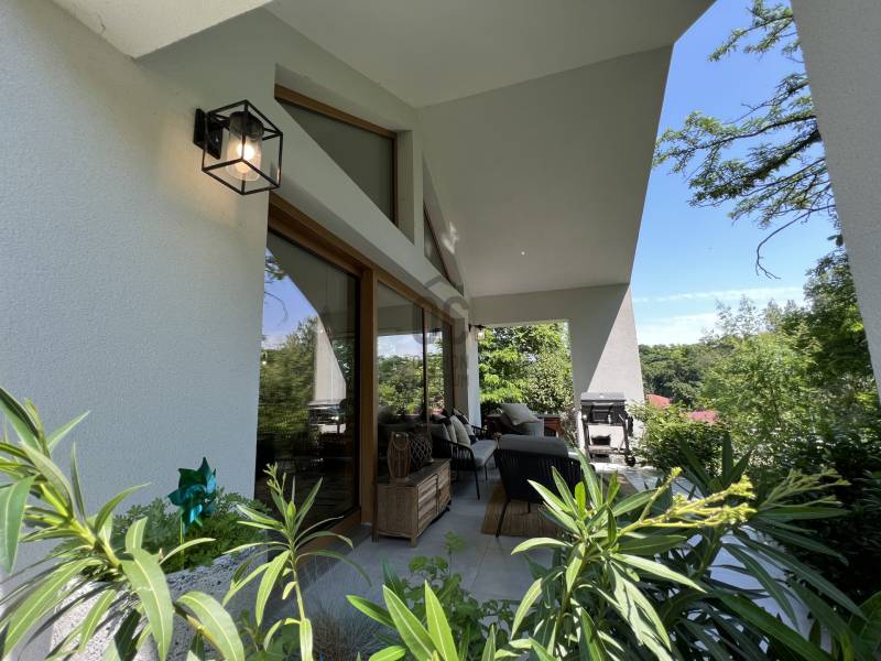 VARÁZSLATOS ZÖLD KÖRNYEZET, EGYEDÜLÁLLÓ STÍLUS és a BALATONI ÉLET hármasa találkozik ebben a páratlan ingatlanban.Balatonföldvár legszebb részen, az erdővel körülölelt Karika völgyben, saját részre építetett, exkluzív adottságokkal rendelkező, kiváló minőségi alapanyagokból, bútorokkal berendezett, napfényes családi ház/nyaraló keresi új gazdáját!A 2020-ban épült ingatlan, egy gyönyörűen parkosított 890 nm-es telken fekszik.Hasznos alapterülete 83 nm, melyhez egy 19 nm-es déli tájolású fedett terasz csatlakozik.Jellemzői:*3 hálószóba, konyha-étkező-nappali, fürdőszoba, WC, terasz*Porotherm 30K klímatégla*nyílászárók nagy keménységű trópusi fából, alumínium redőnnyel és szúnyoghálóval*egyedi fa beltéri ajtók, tolóajtó*Varilight réz villanykapcsolók*CLIFF konyhabútor*Beépített konyhai gépek (mosogatógép, sütő, mikrohullámú sütő, hűtőszekrény, páraelszívó)*egyedi stílusú gránit mosogató*bioetanol kandallóA ház klímájáról padlófűtés (cirkó gázkazán) valamint hűtő-fűtő klíma gondoskodik.A magas minőségű szigetelésnek köszönhetően, a nagy belmagasság ellenére, nagyon alacsony a fűtési költség.A ház egészéről a teljes műszaki dokumentáció rendelkezésre áll.Ne hagyja ki ezt a páratlan ingatlant!Bővebb felvilágosításért várom megtisztelő hívását!