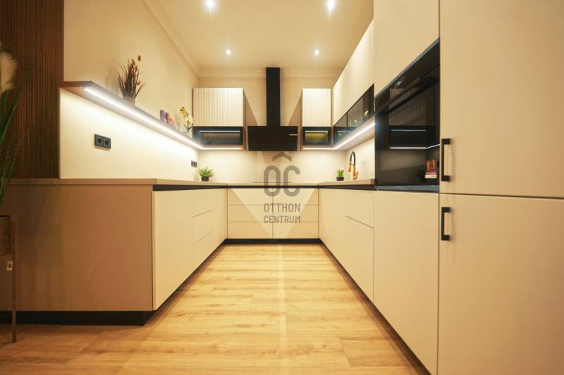 Prémium minőségben felújított 84 m²-es lakás Németvölgy szívében- Eladásra kínálunk egy teljes körűen, magas minőségben felújított, 84 m²-es lakást a kedvelt Németvölgyben, a Márvány utca Alkotás utca feletti szakaszán.- A liftes, kiváló állapotú épület első emeletén található lakás bejárata a frekventált, üzletekkel és közlekedéssel jól ellátott Márvány utcára nyílik, míg a lakás ablakai a csendes, zöld Hertelendy utcára tekintenek, délies tájolással.A lakás elrendezése és helyiségei- Tágas nappali–étkező (23 m²)- Különálló, mégis egybefüggő térélményt adó konyha (10 m²)- Két hálószoba:16 m² – déli fekvésű, a Hertelendy utcára néz11 m² – világos, növényekkel beültetett udvarra néz- Két fürdőszoba WC-vel- Tágas előszoba mennyezetig érő beépített gardróbbal- Külön gépészeti és tárolóhelyiség, mosó- és szárítógép számára előkészítve- A nappali, konyha és előtér közel 40 m²-es összefüggő teret alkotnak, amely rendkívül világos és tágas hatást biztosít.Műszaki tartalom és felújítás- Teljeskörű belső átalakítás: minden válaszfal cserélve- Erősített, hangszigetelt gipszkarton falak- Plusz hangszigetelés a főfalakon- Teljes mennyezeti álmenyezet hűtőpanelek integrálásával- Padlófűtés új, betonozott aljzattal- Daikin hőszivattyú a gazdaságos hűtéshez, fűtéshez és melegvízhez- Teljes elektromos és gépészeti hálózat csere- Villanyóra: 3×16 A- Gázóra: ideiglenesen leszerelve, igény esetén visszaköthető- Nyílászárók és árnyékolás- Új, hőszigetelt üvegezésű fa ablakok a Hertelendy utcai oldalon- Műanyag nyílászáró az udvari szobában- Prémium műanyag bejárati ajtó, acél merevítéssel és felülvilágítóval- Új, motoros redőnyök minden ablakon- Burkolatok, bútorzat és gépek- Prémium vízálló laminált padló a lakás teljes területén- Porcelanosa burkolatok, Hansgrohe szerelvények a fürdőkben- Egyedi gyártású előszoba- és konyhabútorok minőségi vasalatokkal- Beépített Bosch konyhagépek:182 cm magas hűtő-fagyasztómosogatógépkerámia főzőlapsütőpáraelszívó- 3 méter széles beépített gardrób a nagyobb hálószobábanA lakás a kisszoba kivételével minőségi német bútorokkal berendezett, amelyek a vételár részét képezik (igény esetén jóváírhatók)A társasház állapota és költségei- A társasház pénzügyei rendezettek- A tető szigetelése és a villamos hálózat felújítása 2024-ben történt meg- Közös költség 2025.07.01-től: 35 450 FtHa bármi kérdése még lenne, kérem hívjon. A megtekintésre pedig találunk időpontot. Várom a hívását.
