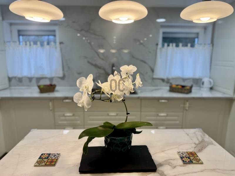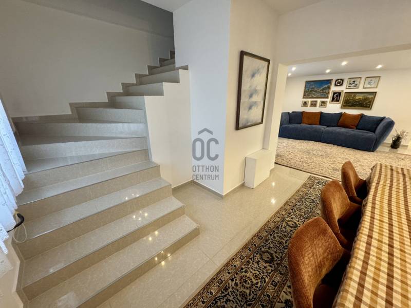 Százhalombatta legszebb részén, az Óvárosban helyezkedik el ez a kiváló adottságokkal rendelkező családi ház. 1994-ben épült és 2024-25-ben lett teljeskörűen, különleges módon és minőségben felújítva. Szeretettel, körültekintően, magas igények szerint lett kialakítva.- 1/1 tulajdonban van- beépített bútorok és garancia alatt álló BOSCH gépek az árban- a többi bútor és gép megbeszélés tárgyát képezi- délkeleti tájolása miatt mindig kellemesen süt be a nap- mozgásérzékelő, riasztó, távfelügyeleti rendszer, 2db 360 fokos kamera mobilapplikációval- műanyag nyílászárók, jó szigetelés és biztonsági bejárati ajtó- a felső emeleti szobából DUNAI PANORÁMA- KERTÉPITÉSZET, -DESIGN, LAKBERENDEZÉS- intimszféra garantáltBuszmegálló kettő is a közelben, közel a vasútállomás és Budapest is fél órán belül elérhető.Ajánlom pároknak, kis- és nagycsaládosoknak.Várom megkeresését!Amennyiben további részletekre kíváncsi:Az első benyomás már a bejáratnál és a gondosan kialakított kertnél magával ragad.Színvilág nem a véletlen műve, tökéletes harmoniában van egymással, akár a feng-shui alapján:A ház, a kerítés, a belső terek színvilága professzionálisan lett tervezve, minden árnyalat tökéletes harmóniában van egymással, a belső berendezést pedig lakberendező készítette.Kert - design garden: 10-12db gyümölcsfacsemete lett elültetve (1 édes alma, 1 savanyú alma, 1 szilva, 1 cseresznye, 1 meggy, 1 körte, 1 barack, 1 mandula, 1 gránátalma, 1 füge stb.). Úgy lettek elültetve, hogy egymás után virágozzanak, így a termésük is folyamatosan, tavasztól késő őszig érkezik (májustól október végéig). A kert teljes mértékben kertész által tervezett és kivitelezett, magas dizájnban kialakított, igazi oázis. Kiemelkedően figyeltek az intimszférára: kb. 20 örökzöld, leyland ciprusok garantálják a privát hangulatot. A kerítésnél babérmeggy sor húzódik, rózsák futnak fel az apácarácsokon, körbe levendula fut és kecskerágók is vannak közöttük. Télen is az örökzöld növények miatt garantált az intimszféra. A gyep a legjobb minőségű sportfűből készült, tartós és strapabíró, a talaj termőréteggel lett feltöltve, hogy minden növény egészségesen fejlődhessen. A kert egyszerre esztétikus, praktikus és teljesen zárt, így maximális intimitást biztosít.Úgy lett kialakítva a kert, hogy a fent említett dísznövények és gyümölcsfák körbeveszik a kerítést, így 200m2 füvesített rész van a kert közepén, így medence, sütögető vagy más szabadidős lehetőségek is könnyen elférnek. Az egyik oldalon vadonatúj drótkerítés is van. Díszkút az udvarban, kiépített öntözőrendszerrel.Közművek és rezsi:Két vízóra van, az egyik a kerti locsoláshoz a pincében, a másik a normál fogyasztásra az aknában. A gázóra kint van a ház elején, a csatornánál átemelő segíti a lejtés miatt a vízemelést. A villanyvezetékek vadonatújak. Az álmennyezet a dizájnnak megfelelően spotlámpákkal van ellátva. Kiváló szigetelés, a rezsi szinte elhanyagolható! A cirkó gázkazán vadonatúj (BOSCH), engedélyezési dokumentummal együtt. Lent padlófűtés van, fent radiátorok. Emeletenként 1-1 inverteres klíma (MIDEA, prémiummárka), egy másik szobában ki van építve, ha igénye lenne rá.Bejárat:Az elektromos autóbejáró és a modern, fémből készült kerítés fa design elemekkel már a megérkezés pillanatában minőséget és letisztult eleganciát sugall. A kinti világítás kapcsolóval működik. Díszkővel van körberakva a ház, ami alatt geotextilia van és szegővel van lezárva. A csőrendszer elnyeli az esővizet. Pince:Ritkaság, hogy egy ház alatt pince található: itt egy tágas 25,25m2-es pince van, 5cm aljzatbetonnal és szellőzőrendszerrel a nedvesség ellen.Környék:Az ingatlan Százhalombatta legértékesebb részén, az exkluzív Óvárosban található, egy csendes zsákutcában, ahol nincs átjáróforgalom. A környék a város legnyugodtabb, legbiztonságosabb övezete, valódi békét és kivételes életminőséget kínál.Városunk:Százhalombatta Budapest közvetlen vonzáskörzetének egyik legkulturáltabb és legdinamikusabban fejlődő kisvárosa. A Duna-part nyugalma, a gondosan karbantartott zöldterületek és a modern városi infrastruktúra együtt teremtenek kimagasló életminőséget.A város kiemelkedően jó közlekedési kapcsolatokkal rendelkezik, így a főváros mindössze percekre van, miközben a környezet megőrzi a prémium, csendes, kertvárosi hangulatot.Minőségi oktatási intézmények, sport- és wellnesslehetőségek, valamint gazdag kulturális programkínálat teszik vonzóvá a tudatos ingatlanvásárlók és befektetők számára.Százhalombatta mára egy olyan város, ahol a kényelem, biztonság és értékállóság találkozik - tökéletes választás igényes otthonkeresők számára.Jelentkezzen! :)