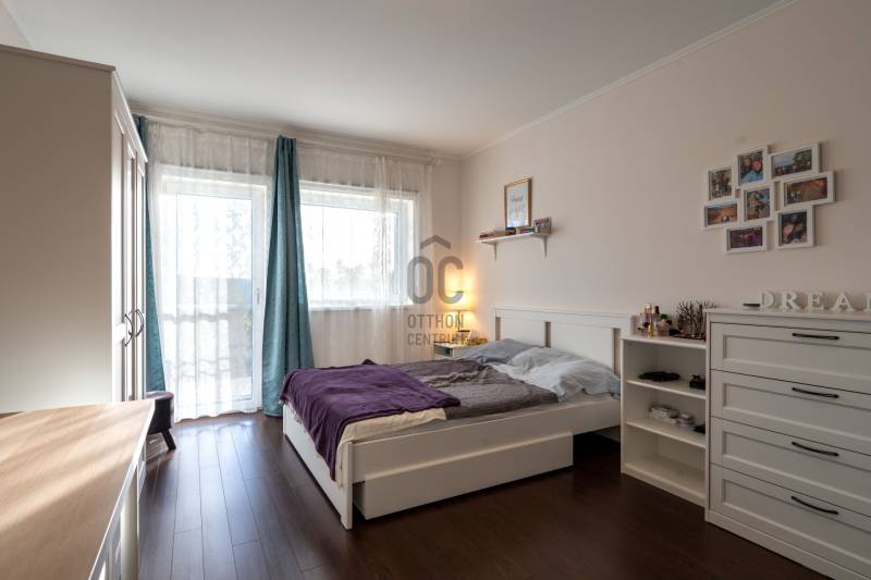 A Budai-hegység ölelésében, Nagykovácsi egyik legexkluzívabb, természetközeli részén, a Kültelek utcában kínálunk megvételre egy ritkaságszámba menő, 2018-ban épült, háromszintes, 8 szobás, panorámás családi rezidenciát. Az ingatlan egy intim, 1007 m²-es délnyugati fekvésű telken helyezkedik el, ahonnan lélegzetelállító kilátás nyílik a városi sziluettre és a környező zöld dombokra. A ház két utcáról is megközelíthető – az egyik oldalon aszfaltozott út, a másikon csupán 50 méteres, gondozott murvás szakasz vezet fel.A rezidencia tégla falazattal, gondosan megválogatott, időtálló építőanyagokkal és modern műszaki tartalommal készült. A padló- és radiátoros fűtésrendszerrel kombinált gázcirkó, valamint nagycsaládos igényeket is kiszolgáló vízmelegítővel. Az ingatlan kifogástalan állapotú, esztétikailag és műszakilag egyaránt prémium színvonalat képvisel.Letisztult elegancia három szinten – gondosan megtervezett élettérAlagsor – wellness és privát rekreációraA ház alsó szintje a kikapcsolódásnak és a praktikumoknak szentelt:- Prémium szauna külön zuhanyzóval- Pihenésre alkalmas lakótér (25 m²), akár vendégszobaként, akár edzőhelyként- Tágas raktár (20 m²), igényes gépészeti helyiség- Közvetlen kapcsolat a 27 m²-es terasszal, ahonnan a kert nyugalma tárul fel.- Ez a szint tökéletesen működik privát wellnessrészlegként vagy önálló vendéglakrészként.Földszint – a rezidencia reprezentatív központja.A földszinten a nagyvonalú terek, a fény és a panoráma dominálnak:- Fényárban úszó nappali közvetlen teraszkijárattal- Tágas étkező és modern, praktikusan kialakított konyha kamrával- Különálló vendégszoba és vendégmosdó- Privát hálószoba saját gardróbbal és fürdőszobával- Külön dolgozószoba, amely otthoni irodának vagy könyvtárnak is ideális- A ház egyik legszebb eleme a 38 m²-es panorámás terasz, amely a nappali és az étkező együttes meghosszabbítása – tökéletes helyszín reggeli kávéhoz vagy esti borozáshoz- A földszint eleganciája és funkcionalitása egyaránt a modern családi életet szolgálja.Emelet – privát lakosztály a nyugalom jegyébenA felső szint a ház privát, pihenésre kialakított szférája:- Két impozáns méretű hálószoba- Stílusos, külön fürdőszoba- 12 m²-es erkély, amely a hálókból közvetlenül elérhető és páratlan panorámát biztosít- Ez a szint külön lakrésznek is tökéletes, ideális szülői lakosztálynak vagy idősebb gyermekek számára.Ahol a természet és a luxus harmonizál:1000 m²-es, intim, délnyugati fekvésű kert állandó napsütést, teljes privát szférát és kivételes panorámát kínál. A telken két nyitott gépkocsi-beálló biztosítja a kényelmes parkolást.Nagykovácsi a főváros egyik legértékesebb agglomerációs települése:- magas életminőséggel, kiváló levegővel, világszínvonalú oktatási intézményekkel (köztük az Amerikai Nemzetközi Iskolával), közvetlenül a Budai Tájvédelmi Körzet szomszédságában.- Nagykovácsi ötvözi a természet közelségét a modern, családbarát infrastruktúrával.Ez az ingatlan nem csupán egy ház – inkább egy életérzés!Foglaljon időpontot telefonon a megtekintésre – engedje, hogy ez a különleges rezidencia személyesen is elvarázsolja.Hitelezési Szakértőnk egyetlen lépésben bemutatja Önnek az összes pénzintézet ajánlatát - így elkerülheti a hosszadalmas és felesleges banki látogatásokat – gyorsan, hatékonyan és a legjobb döntést biztosítva Önnek.Ez az ingatlan a \"Felező csomag\" megbízási portfólióhoz tartozik. Részletek az Otthon Centrum weboldalán.
