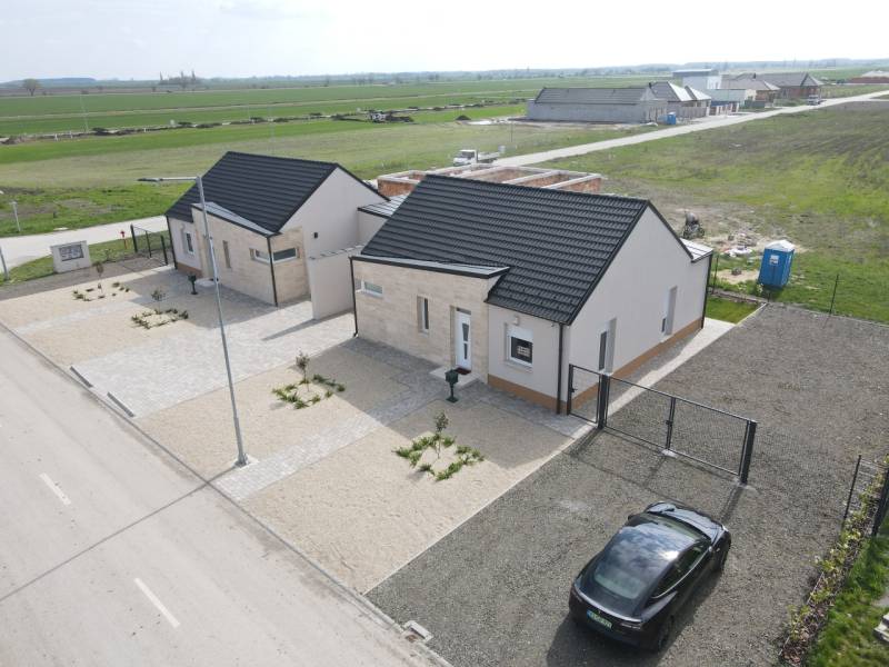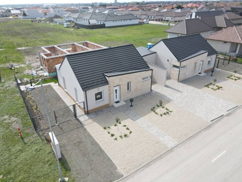Jászberényben a Szatmári lakóparkban a Bársony utában, 798 m2-es telken, eladó 2db nettó 85,32m2-es + 12,83m2 terasszal és 16,31 m2-es gépkocsibeállóval rendelkező, 30-as Porotherm P30 N+F tégla falazóelemmel épült, fafödémes, 3 szoba plusz amerikaikonyha- nappalis kertkapcsolatos Ikerházfél.A jobb oldali ikerfél elkelt.Az ingatlan tetejét Terran betoncseréppel fedték, a 7 légkamrás Aluplast nyílászárók korszerű 3 rétegű üveggel szerelt műanyag thermo kivitelűek, gránit párkányokkal,aluminium elektromos távirányítható okos redőnnyökkel és szúnyoghálóval. A belső nyílászárók CPL dekorfóliás prémium minőségűek.A homlokzatok 15cm dryvit szigeteléssel, a padló 15cm lépésálló szigeteléssel, a födém 30 cm szórt purhab szigeteléssel lett ellátva. A két egymás melletti lakást elválasztó falai, Wienerberger Porotherm 30 AKU Z 30 léghanggátló kézi falazóblokkból készültek, az áthallás kizárásának érdekében.A fűtésről a melegvíz ellátásáról és a hűtésről energiahatékony Bosch 11 kw-os split rendszerű hőszivattyú gondoskodik, uponor padlófűtésrendszer segítségével indirekt puffertartállyal.A magas minőségű műszaki tartalom szerint, minőségi szaniterek, Geberit falsík mögötti wc tartályok, Teka csaptelepek, legrand kapcsolók és konnektorok kerültek beépítésre.Az első osztályú nagykopásállóságú melegburkolatok és hideg burkolatok, Spanyol és Olasz minőségi termékek.A padlásterek külön padlásfeljárón megközelíthetőek és burkoltak így lehetőséget kínálnak a tárolásra.Saját felszíni kocsibeállón van lehetőség a parkolásra két autó részére. A parkosított udavron gyepszőnyeg került kialakításra, autómata öntözőrendszerrel.A biztonságért riasztórendszerek felelnek.A társasházi alapító okiratnak köszönhetően minden lakás külön helyrajzi számot kapott.Kérésre az ingatlan teljes tervdokumentációja, hatósági bizonyítványa rendelkezésre áll.INGYENES hitel tanácsadás, CSOK Plusz ügyintézés!BANKFÜGGETLEN hitelcentrumunk az összes elérhető bank és hitelintézet ajánlatát versenyezteti az Ön kedvéért, ráadásul DÍJMENTESEN.- Egyedi, bankfiókban nem elérhető kamat- és díjkedvezmények- Hitelképesség vizsgálat- Idő, energia és pénz megtakarítás- Teljes hivatali ügyintézésAmennyiben hirdetésem felkeltette az érdeklődését vagy egyéb információra van szüksége hívjon bizalommal!