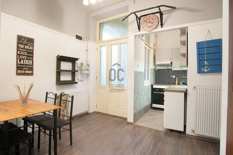 Ebben a rendezett, szép társasházban kínáljuk megvételre ezt az első emeleti, kellemes hangulatú saroklakást, amely tágas tereivel és praktikus elrendezésével azonnal otthonossá válik.A nagy nappali mellé külön hálószoba, igazi étkező-konyha, kamra/háztartási helyiség, kényelmes fürdő és külön WC tartozik. A bejárat előtt saját kis, lekerített részünk van, ami ritka lehetőség a belvárosban — tárolásra, előtérnek vagy akár mini terasznak is tökéletes.12 éve teljeskörű víz, fűtés és villany felújítás történt.5-6 éve új, gépesített konyha és műanyag nyílászárók kerültek beépítésre. Éppen ezért műszakilag megfelelő a lakás, ízlés szerint minimális esztétikai ráncfelvarrás után azonnal költözhető. A lakáshoz saját pincei tároló is tartozik.Tehermentes ingatlan, 1/1 tulajdoni hányaddal - zökkenőmentes adásvétel.A környék ellátottsága átlagon felüli: boltok, kávézók, éttermek, művészet, szórakozás, kiváló közlekedési lehetőségek a közelben.Ideális első otthonnak, és befektetésnek is kifejezetten jó választás.Gyere, nézd meg – könnyű beleszeretni.Várom a hívásod! Amennyiben nem venném fel, ígérem amint lehetőségem adódik visszahívlak.Ez az ingatlan a \"Felező csomag\" megbízási portfólióhoz tartozik. Részletek az Otthon Centrum weboldalán.