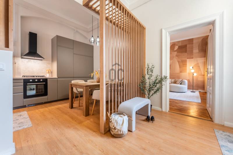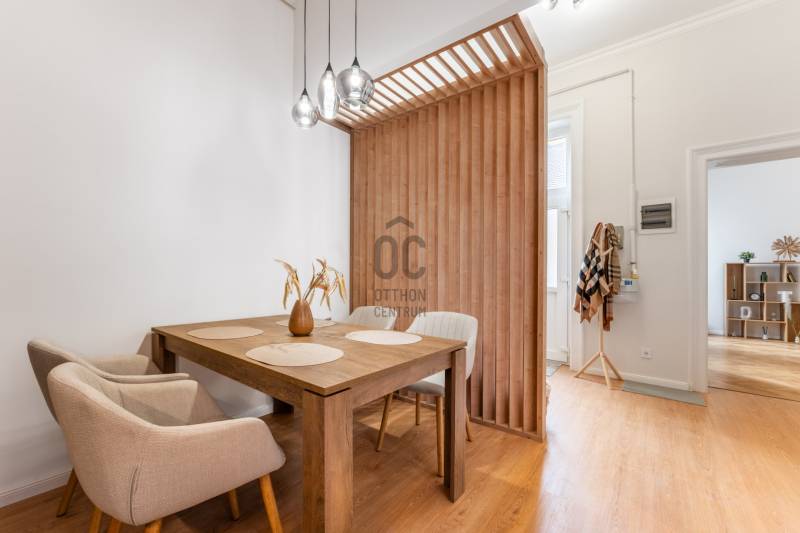 Lépj be egy olyan belvárosi lakásba, amely első pillanattól otthonosságot és harmóniát áraszt. Üdv itthon!RÖVID ÖSSZEFOGLALÓBudapest VI. kerületében, a Bajcsy-Zsilinszky úton, egy karbantartott, liftes polgári ház 3. emeletén kínálom eladásra ezt a 74 m²-es, nappali + hálós, külön konyhás, saját tárolóval és fürdőszobával rendelkező, udvari nézetű, így rendkívül csendes és világos lakást. Az ingatlan modern, letisztult és otthonos hangulatot kínál; frissen felújított belső tere azonnal költözhető állapotot biztosít.Ideális választás bárkinek, aki stílusos belvárosi otthont szeretne, vagy hosszú távon is értékálló befektetésben gondolkodik.MODERN OTTHON POLGÁRI RÉSZLETEKKELA lakás teljes körű felújításon esett át, minden eleme átgondolt tervezéssel és minőségi anyaghasználattal készült, miközben megőrizte a klasszikus polgári stílus jellegzetességeit: a 3,7 méteres belmagasságot, a halszálka parkettát és a régi típusú beltéri ajtók eleganciáját.A tágas nappali és a 20,88 m²-es hálószoba a belső udvarra néz, így teljes csendet és nyugalmat biztosítanak, a lakás előtt pedig semmilyen átjárás nem zavarja az intim, nyugodt környezetet. A fürdőszoba nagy ablakkal rendelkezik, amely egy nyitott világítóudvarra néz – akárcsak a konyha és a tároló –, így ezek a helyiségek is természetes fényt kapnak.A háló klímával felszerelt (hűt-fűt), a nappaliban kialakították a klíma előkészítését. A fűtésről és a meleg vízről Ariston kombi cirkó gondoskodik radiátoros hőleadással, a szobák pedig redőnyösek.Ez az otthon modern, letisztult és otthonos hangulatot kínál a belváros nyugodt zártságában.ÉPÜLETA lakás egy 1890-es évek elején épült, klasszikus polgári hangulatot árasztó, liftes ház legfelső emeletén található. Az épület rendezett, tiszta és pénzügyileg stabil; a társasház felelős gazdálkodásának köszönhetően folyamatosan karbantartott. A tető felújítása már megtörtént, a belső homlokzat pedig hamarosan megújul, pályázati forrásból történő festéssel.Minden fogyasztás (víz, villany, gáz) egyedi mérés alapján fizetendő, a lakás fenntartási költségei pedig kedvezőek a modern gépészetnek és energiahatékony megoldásoknak köszönhetően.Parkolás közterületen lehetséges, a bejelentett lakosok számára kedvezményes éves engedéllyel. A közelben több helyen is található garázsbérlési lehetőség, ami további kényelmet biztosít az itt lakóknak.KÖRNYÉKA Bajcsy-Zsilinszky út 59. szám alatti ingatlan kivételes elhelyezkedéssel bír Budapest szívében: mindössze néhány perc sétára a Nyugati tértől, ahol metró, villamos és számtalan buszjárat biztosít gyors és egyszerű közlekedést a város bármely pontjára.Az Arany János utca metrómegálló körülbelül 9 perc, míg az Oktogon és az Andrássy út nagyjából 12 perc kényelmes sétával érhető el. Aki a zöldet keresi, annak külön öröm, hogy a Margitsziget is könnyedén, rövid sétával vagy egyetlen villamosmegállóval elérhető—ideális futáshoz, piknikhez vagy hétvégi feltöltődéshez.A környék nemcsak közlekedés szempontjából kiemelkedő, hanem életstílusban is sokat ad:– esti kikapcsolódási lehetőségek kávézókban és borbárokban– séta a közeli Bazilika környezetében vagy a Nyugati felé vezető városi utcákon– változatos éttermek, üzletek és szolgáltatások a környék minden pontján– kulturális élmények és polgári házsorok karakteres építészeti világaEz a városi környezet ideális azoknak, akik szeretik a belváros lendületét, ugyanakkor értékelik a klasszikus utcák hangulatát. A modern lakás így egy olyan történelmi közegben helyezkedik el, ahol a múlt szépsége és a jelen kényelme természetes harmóniában találkozik.Nézd meg személyesen is ezt a hangulatos lakást. Várom hívásod!----------------------------------------------Díjmentes, bankfüggetlen hiteltanácsadással támogatjuk vevő ügyfeleinket a számukra legelőnyösebb finanszírozási döntések meghozatalában. Opcionálisan igénybe vehető kiegészítő szolgáltatásainkkal – mint ügyvédi közreműködés, energetikai tanúsítvány vagy villamos biztonsági felülvizsgálat – teljes körű szakmai támogatást nyújtunk az adásvétel folyamatának minden egyes lépésénél.A hirdetésben szereplő információk tájékoztató jellegűek. A tévedés és az árváltoztatás jogát fenntartjuk. Az esetleges elírásokért és technikai hibákért felelősséget nem vállalunk.
