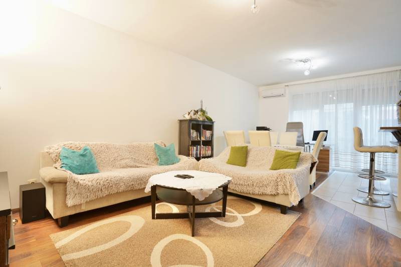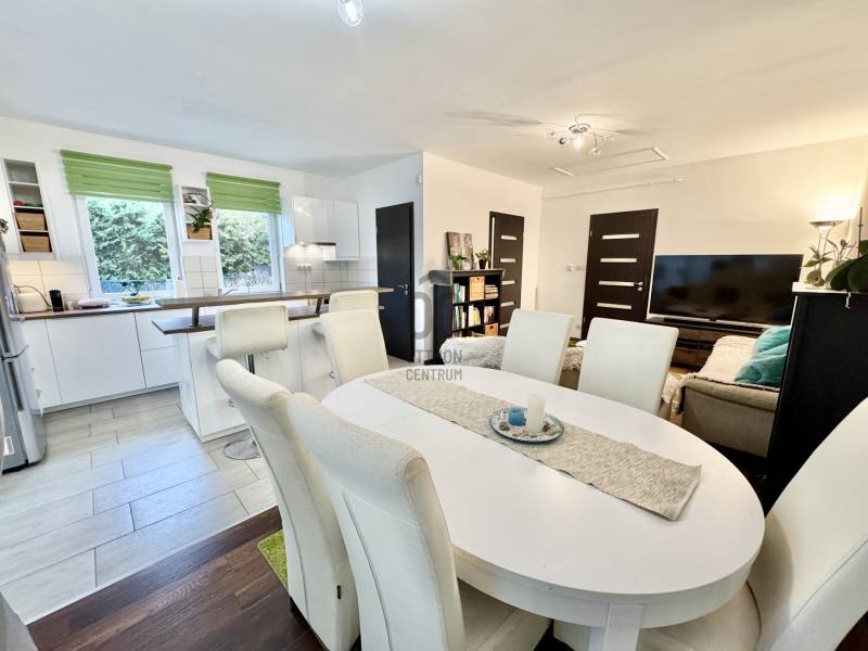 Eladó sorba került egy 110 m²-es ikerházfél Dunakeszi Alsó egyik csendes utcájában, 6 perc sétára a vasútállomástól és buszmegállótól.A Szabadságliget egyik legkedveltebb, csendes, átmenő forgalomtól mentes utcájában helyezkedik el ez a modern, 90 m²-es téglaépítésű ikerházfél, amelyhez egy 13,5 m²-es fűthető télikert, valamint a kertben egy különálló, összkomfortos, 20 m²-es könnyűszerkezetes apartmanház is tartozik.A FŐÉPŰET:A ház 2015-ben épült, 10 cm-es külső hőszigeteléssel, cseréptetővel, műanyag nyílászárókkal, minőségi burkolatokkal, mozgás- és nyitásérzékelő riasztórendszerrel. A melegvízről és a fűtésről Ariston kombi cirkó kazán, a hűtésről és rásegítő fűtésről Gree hűtő-fűtő klíma gondoskodik. A radiátoros és padlófűtés kombinációja kellemes, energiatakarékos hőérzetet biztosít, minden helyiségben redőny van, az ablakokon pedig szúnyogháló. A MELLÉKÉPÜLET:A kert hátsó részén található egy könnyűszerkezetes, hőszigetelt és teljesen önálló 20 nm-es vendégház, amely:- saját szobával,- külön konyhával,- zuhanyzós, beépített WC-vel felszerelt fürdővel,- valamint elektromos padlófűtéssel és klíma előkészítéssel rendelkezik.A melegvizet itt is Ariston, víztartályos villanybojler biztosítja, így az épület teljesen független a főépület rendszereitől. A vendégházhoz tartozik egy 17 m²-es fedett terasz, valamint egy füvesített, sziklakertes pihenő- és sütögető rész is.RENDEZETT, GONDOZOTT KERT:- automata öntözőrendszer- kerti csap- térkövezett, napelemes megvilágított közlekedőfelületek- 3 autó számára fedett beálló közvetlenül a ház mellett- szépen karbantartott gyep, dísznövényekkel beültetett magaságyás, sziklakert és 10-15 éves, magas tujákKIVÁLÓ KÖZLEKEDÉS:- vonattal 18 perc alatt elérhető a Nyugati pályaudvar,- busszal 3 perc Újpest–Káposztásmegyer,- autóval néhány perc alatt elérhető az M2-es, M3-as és az M0-s autópálya.Iá.: 169,5 M Ft.