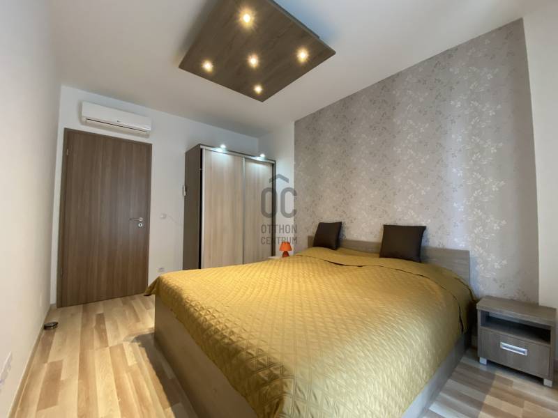 A Corvin sétány egyik igényes, modern társasházában, a 6. emeleten eladó egy 65 m²-es, nappali + 2 külön nyíló hálószobás, kiváló állapotú lakás, 11 m²-es, valóban használható erkéllyel, csendes, belső kertre néző tájolással.Ha a munkádban már elég a projektekből, határidőkből és döntési kényszerekből, akkor a lakáskeresésnél valószínűleg nem erre vágysz. Nem felújításra, nem bútorozásra, nem „majd egyszer kész lesz” megoldásokra.Ha így van, akkor jó helyen jársz: ez egy kész, prémium élethelyzet.Itt minden adott ahhoz, hogy egyszerűen csak megérkezz és élj.Amit ez a lakás nyújt:•igényes, modern társasház, szép, tágas közös terekkel•nappali + 2 külön nyíló, ablakos hálószoba•külön fürdőszoba és külön WC•teljes bútorzattal eladó – azonnal költözhető•nagy méretű, nem keskeny erkély, ahol az étkezőasztal kényelmesen körbeülhető•hatodik emelet, világos terek, kertre néző kilátás•házközponti fűtés egyedi mérőkkel, hőszivattyús rendszer•alacsony rezsi•lakójellegű, rendezett társasház, ahol alapvetően hosszútávra tervező bérlők és tulajdonosok élnek•több külföldi lakó is él a házban – csendes, kulturált, nemzetközi közeg, amelyet sokan kifejezetten értékelnek a Corvin sétány pezsgése mellett.Parkolás – a mindennapok kényelmeA lakáshoz két teremgarázs tartozik, amelyek a teljes vételár részét képezik, és a lakással együtt, egységes csomagként kerülnek értékesítésre. A garázs itt nem extra, hanem az életminőség része.A teljes vételár kialakításánál a két teremgarázs a Corvin sétány környékén bevett, piacon elfogadott, garázsonként ~15 millió forintos szinttel lett figyelembe véve, a lakással együtt, egységes csomagként.Itt nincs utcán körözés, nincs „majd találok valahol helyet”.Hazajössz, legurulsz a mélygarázsba, és beállsz a saját, jól megszokott helyedre – ez a fajta nyugalom a városi életminőség része.Ez az ingatlan azoknak szól, akik pont egy ilyen prémium csomagot keresnek:kész állapotot, átgondolt alaprajzot, nyugalmat, kényelmet és kiszámíthatóságot a város egyik legjobb lokációjában.Megtekintés egyeztetéséhez kérem hívjon telefonon!