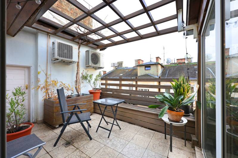Budapest egyik legelőkelőbb részén, a VI. kerületi Diplomatanegyedben, a Benczúr utcában eladó egy belső kétszintes, legfelső emeleti lakás, melyhez tendelkezésre áll a beépíthető tetőtér is.Az ingatlan különlegessége, hogy a tetőtér tovább bővíthető, így akár egy igazán egyedi, több szintes exkluzív penthouse lakás is kialakítható, ilyen lehetőség ritkán adódik ezen a környéken. A környék békés, zöld, elegáns, mégis pár perc sétára van az Andrássy út, a Hősök tere és a Városliget. Ha egy karakteres, különleges alapokkal rendelkező lakást keres Budapest egyik legjobb elhelyezkedésével, akkor ez az ingatlan tökéletes választás.